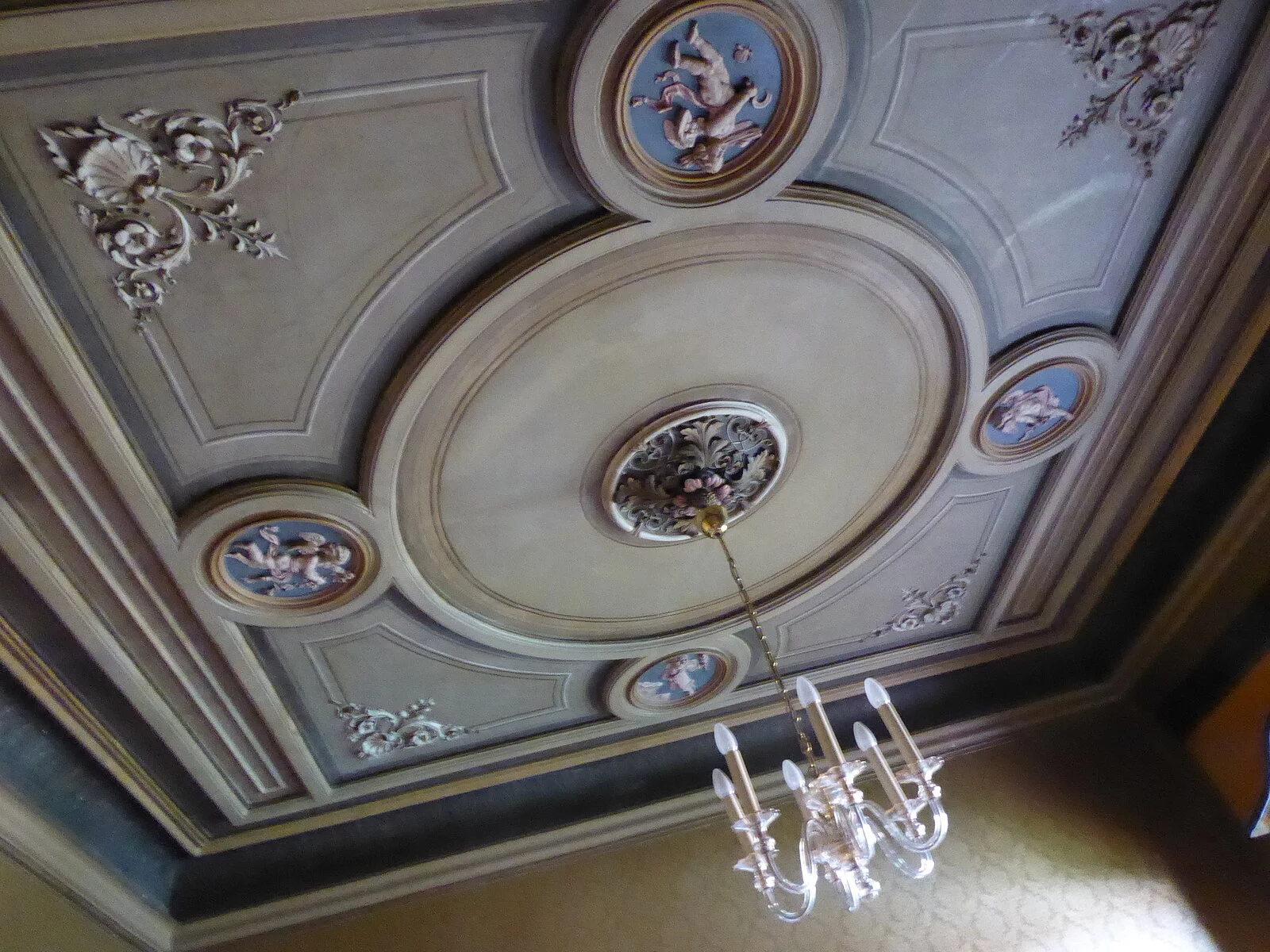 Noch älter sind die Fragmente von Wandmalereien und schlichte Holzdecken im ersten und dritten Obergeschoss (Grafensaal). Sie entstanden in der Renaissancezeit Mitte des 16. Jahrhunderts.