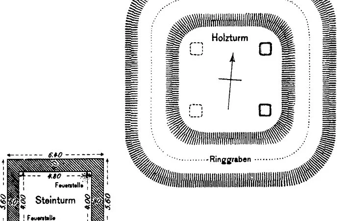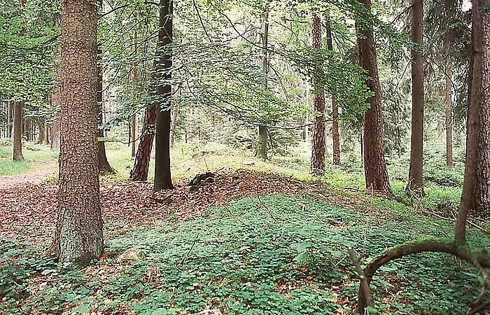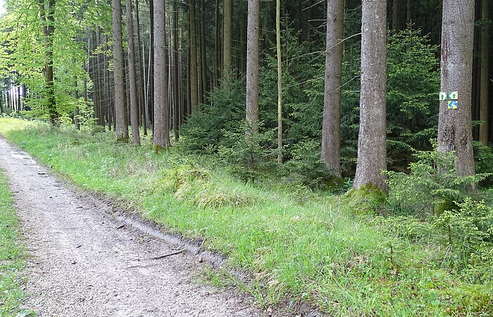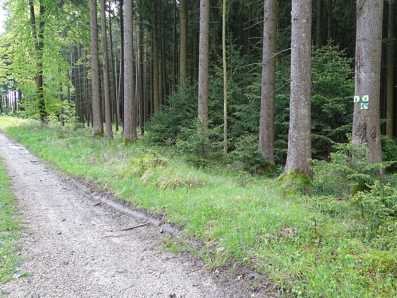 Nachdem an der Kurve mit dem Hinweisstein (Max II., 1861) der Wirtschaftsweg die Limeszone verlassen hat, ist im Hochwald auf circa einem Kilometer Strecke der Steinwall der Mauer zum Teil sehr deutlich zu sehen.