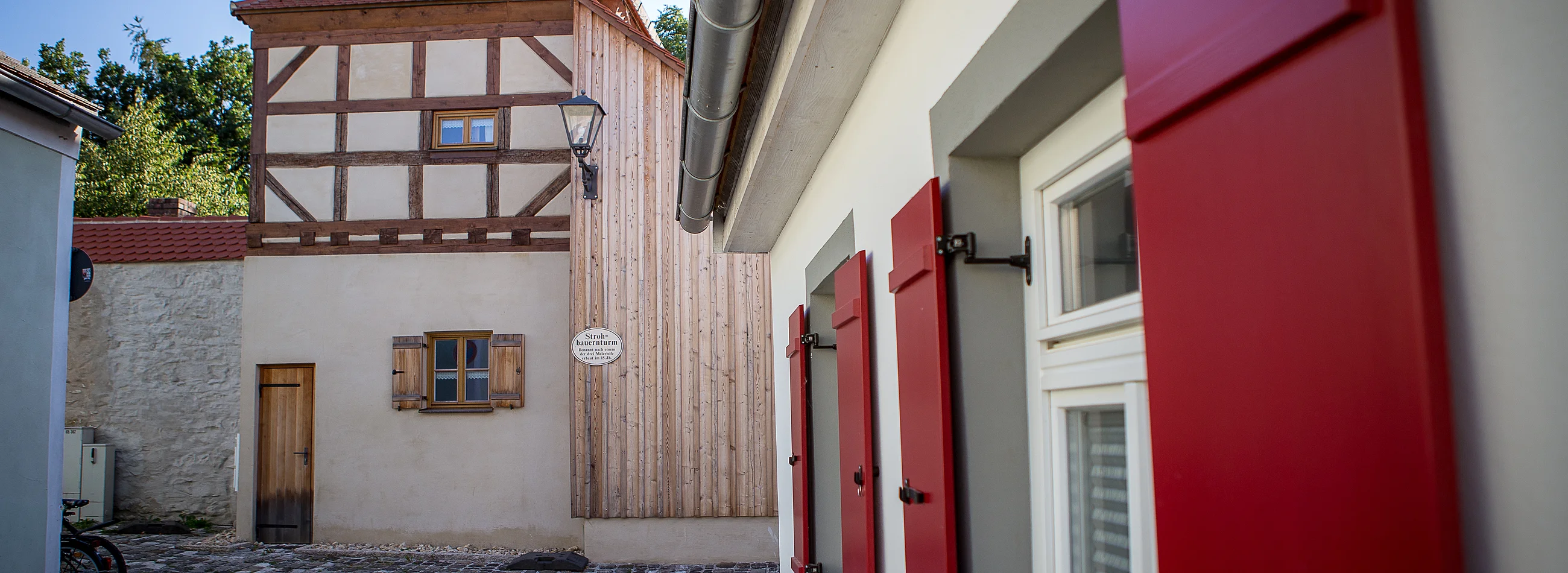 Er hat seinen Namen vom örtlichen Strohbauernhof, einem der drei Meierhöfe. Hier lohnt sich ein Blick auf die mit Legschiefer gedeckten Juradächer - diese Art der Bedachung war früher typisch für die Region und prägte eine ganze Hauslandschaft. Trotz seiner Schönheit und Haltbarkeit ist das Juradach wegen der schwierigen und aufwendigen Dachlegearbeiten heute fast aus den Stadtbildern verschwunden.