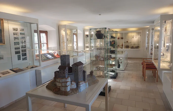 Im Gemeindebereich von Wellheim sind insgesamt fünf Burganlagen nachgewiesen. Die eindrucksvollste hiervon ist die Wellheimer Burg, heute noch Wahrzeichen des Marktes. In kurzen Textbeiträgen wird auf die Geschichte der jeweiligen Anlage eingegangen. In Grafiken werden, sofern sie bekannt sind, die Grundrisse vorgestellt bzw. die Lage der jeweiligen Burg im Gelände angegeben. In der Mitte des Raumes befindet sich in einer Tischvitrine das Modell der Wellheimer Burg im Bauzustand des 14. Jahrhunderts.