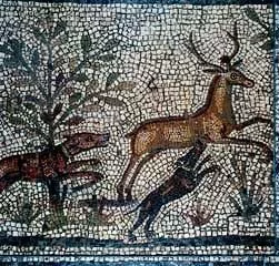 Dort ist er das Herzstück der Ausstellung. Der Westerhofener Mosaikfußboden ist das einzige Mosaik mit Figuren, das im süddeutschen Raum erhalten blieb. Das rechteckige Hauptstück bestimmen effektvoll zwischen Ornamentfeldern platzierte Meeresfabeltiere. Am schmalen Übergang zur Apsis ist eine besonders lebendige Hirschjagdszene gestaltet.