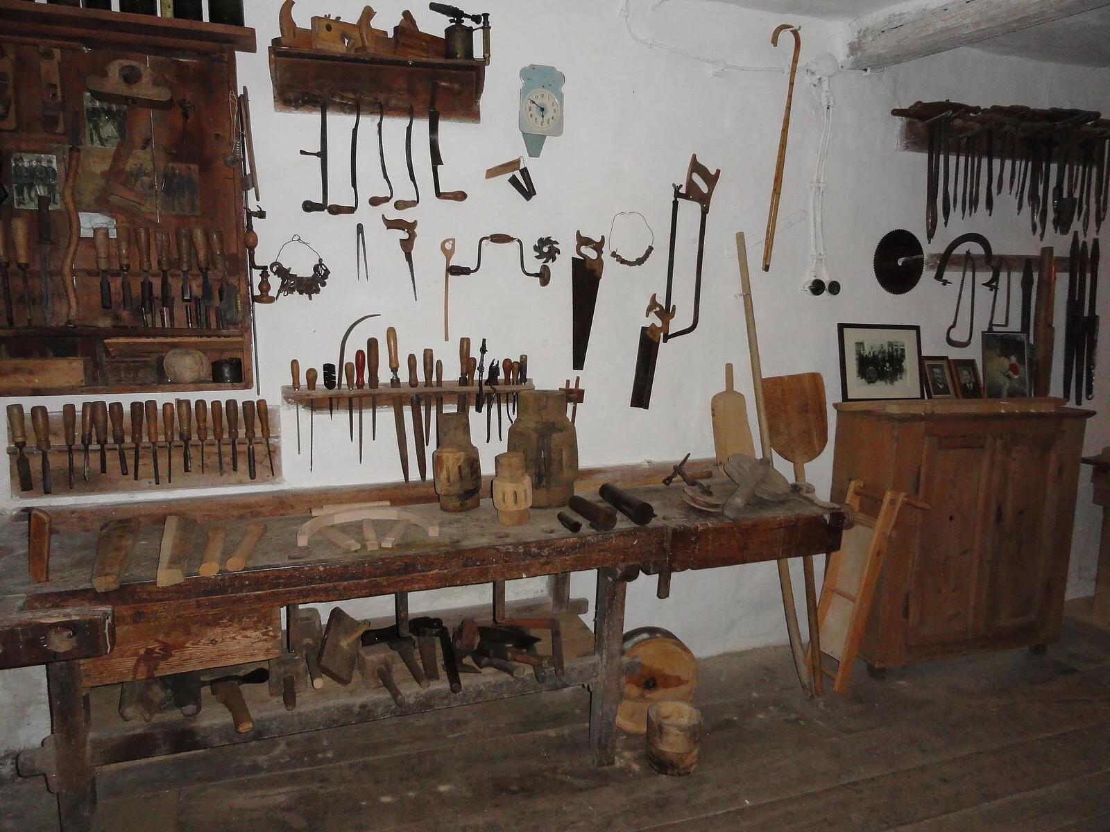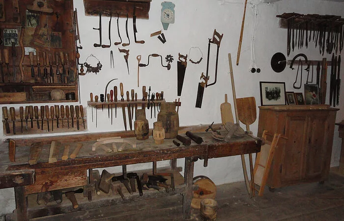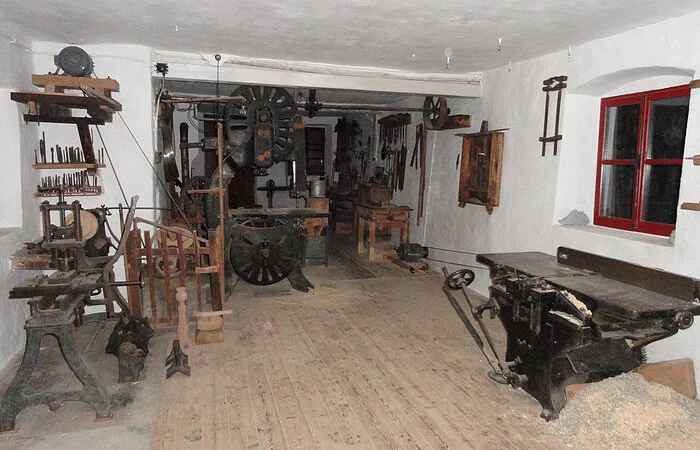Bandsäge, Hobelmaschine und Radmaschine – die historischen Geräte sind noch komplett einsatzfähig. Bis heute werden in der Werkstatt Reparaturen und Nachbauarbeiten vorgenommen.
