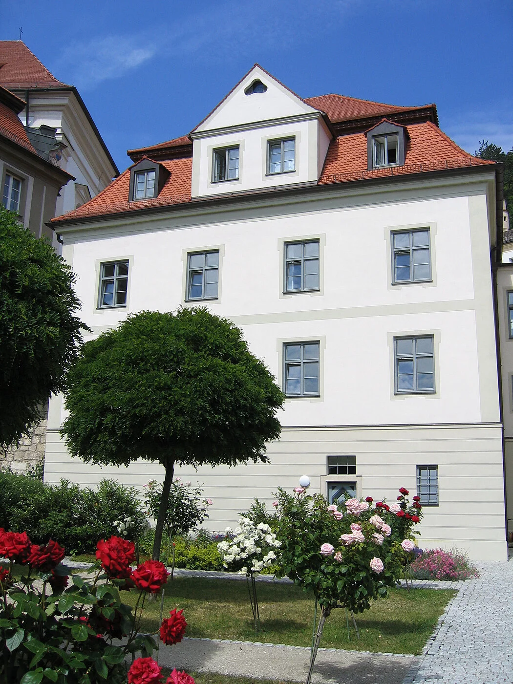 In den sogenannten Marienhäusern, die zur Klosteranlage gehören, ist heute das Gästehaus untergebracht. Die Häuser haben eine lange und wechselvolle Geschichte hinter sich – immerhin besteht die Abtei schon seit dem Jahr 1035. Die Fundamente und Grundmauern der Marienhäuser stammen aus dem 15. Jahrhundert. Damals war hier das Wohn- und Amtshaus des Klosterrichters untergebracht. Beide Häuser wurden im 18. Jahrhundert aufgestockt und erhielten eine Rokokofassade.