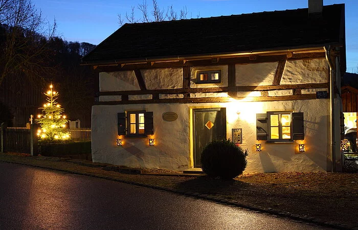 Das Gebäude mit aus Natursteinen gemauertem Erdgeschoss und aufgesetztem Fachwerk diente früher dem gemeindlichen Ziegenhirten als Zuhause. Später nutzte man es als Feuerwehrspritzenhaus und Armenhaus, bevor die aufwendige Sanierung in Angriff genommen wurde. Dabei hat man auch das ursprüngliche Legschieferdach wieder hergestellt, das für Jurahäuser typisch ist.