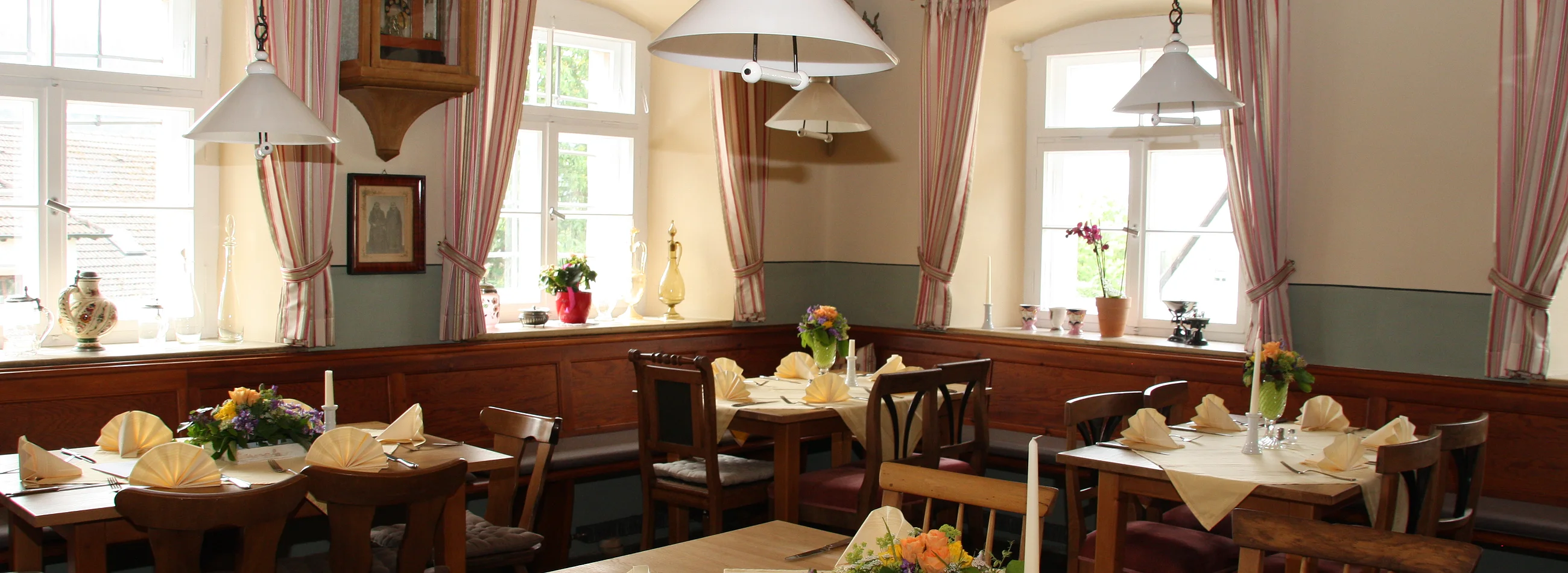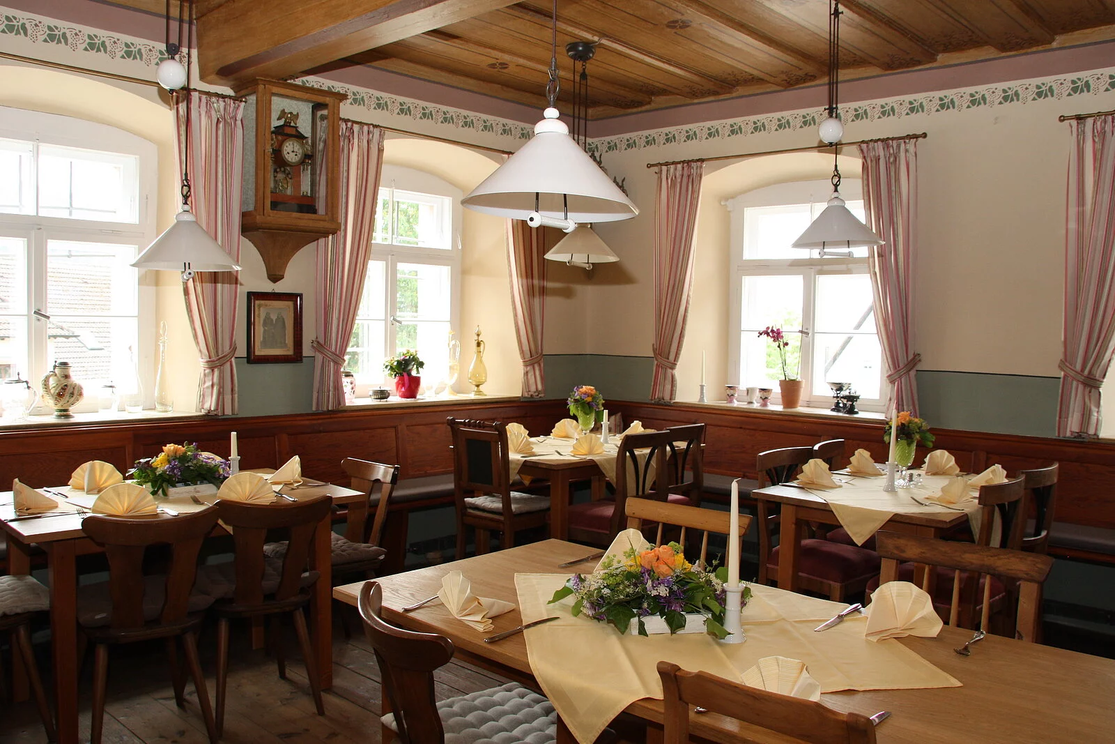 Später hatten die Grafen zu Pappenheim hier ihre Gerichtsbarkeit. Das heutige Gebäude wurde Mitte des 17. Jahrhunderts errichtet. Zwischen 1870 und 1920 gehörte auch eine eigene Brauerei zur Gastwirtschaft. In der liebevollen Ausstattung bleibt die lange Geschichte des Gasthofs bis heute spürbar, gleichzeitig wurde bei den Renovierungsarbeiten aber auch den modernen Ansprüchen an Komfort Rechnung getragen.