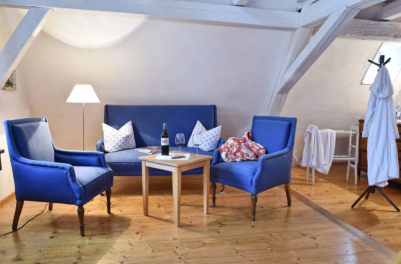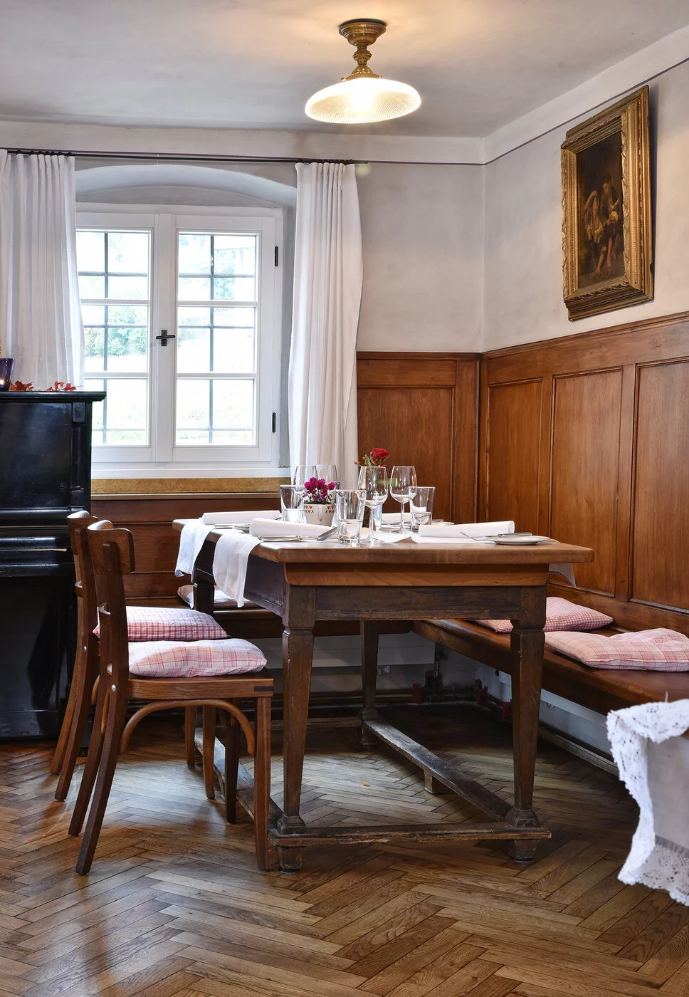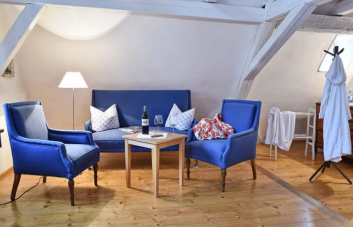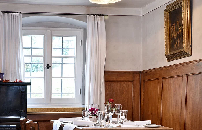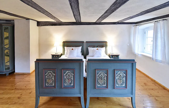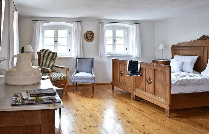 Die hellen Räume sind mit historischen Möbeln stilvoll eingerichtet. Namen wie „Mehlkammer“ geben außerdem Aufschluss über die frühere Nutzung der Zimmer. Für ihr Engagement bei der Instandsetzung der historischen Gebäude wurde die Familie Gentner 2012 mit der Denkmalschutzmedaille ausgezeichnet.