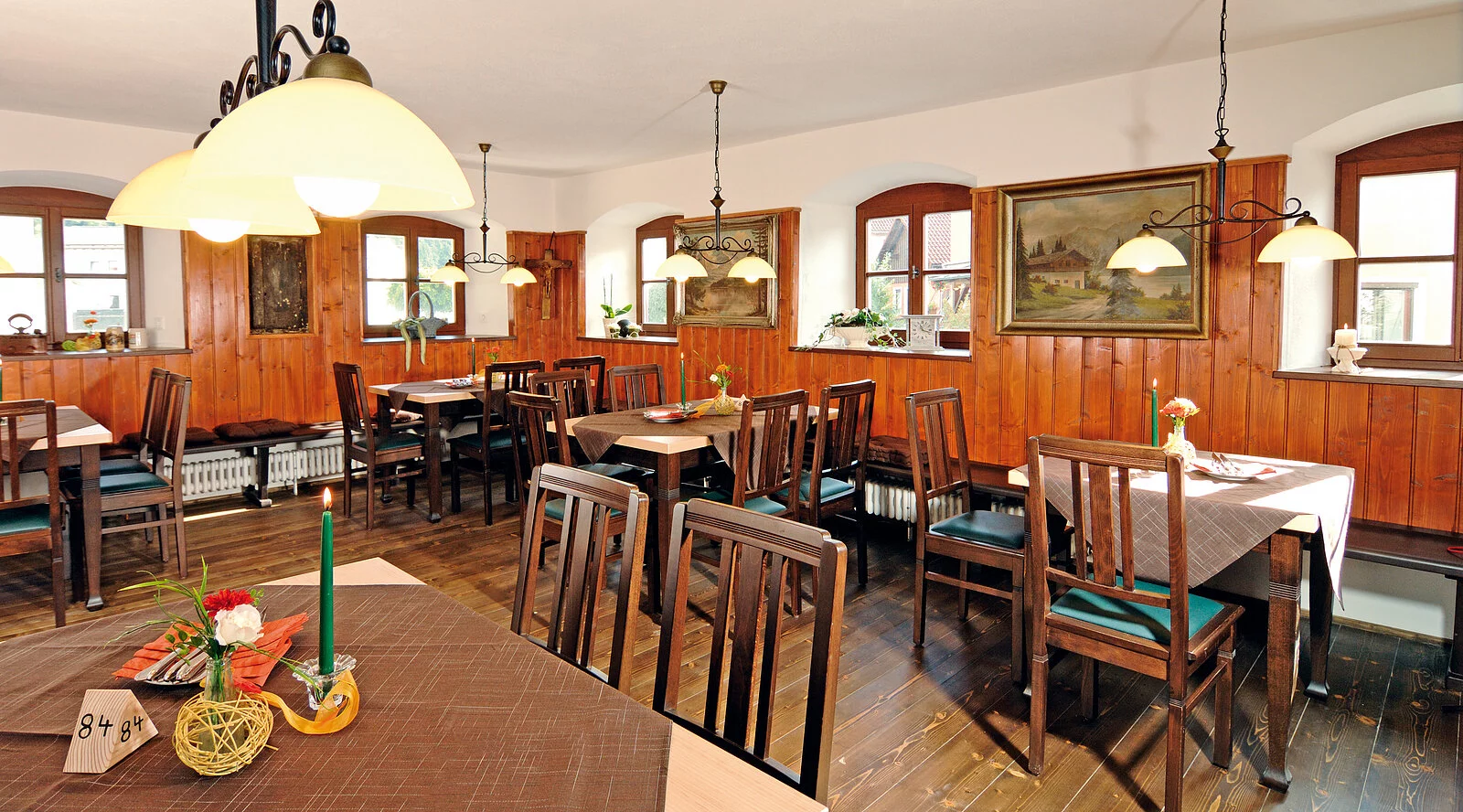Seit 1831 ist eine Gastwirtschaft an dieser Stelle belegt, die heutige Wirtsfamilie betreibt den Gasthof bereits in der fünften Generation. Mit viel Sinn für Tradition ging man deshalb auch die Renovierung der Gebäude an. Fachwerk in den komfortablen Gästezimmern, Holztäfelung oder Gewölbe in den Gasträumen – alle Räume heißen die Gäste mit gemütlicher, bayerischer Atmosphäre willkommen.