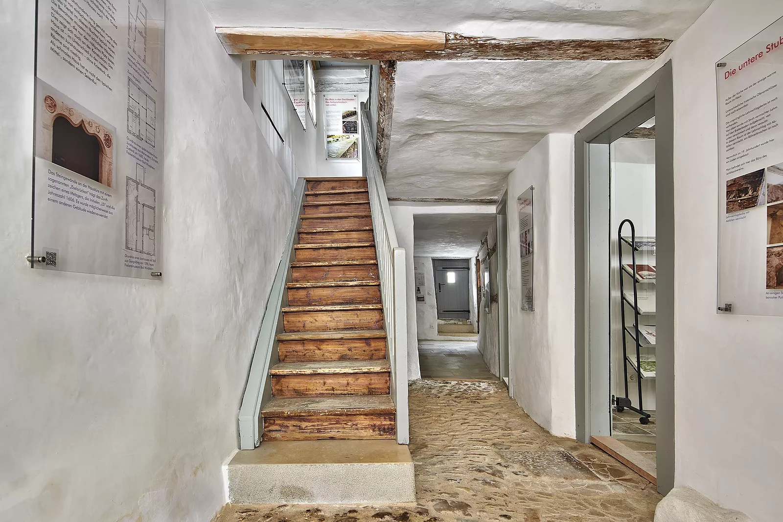 Erbaut wurde das unter Denkmalschutz stehende Jurahaus mit traditionellem Kalkplattendach 1657 als Handwerkerhaus. Mauerwerk, historische Decken und Putze mit Schablonenmalerei machen die Bautradition des Altmühl-Jura sichtbar