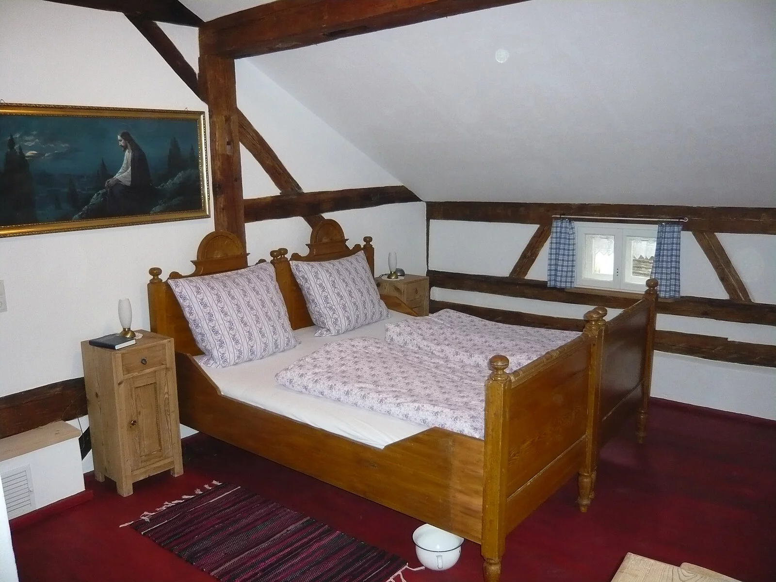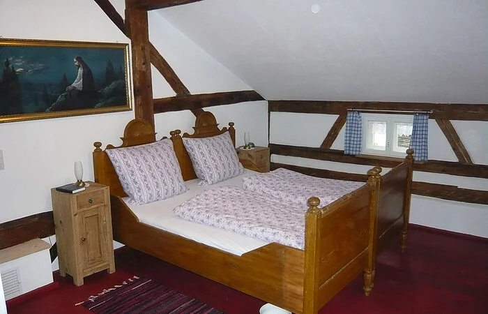 Die Möblierung unterm Legschieferdach ist zu annähernd 100 Prozent historisch. Fachwerk und Kachelofen sorgen für eine gemütliche Atmosphäre.