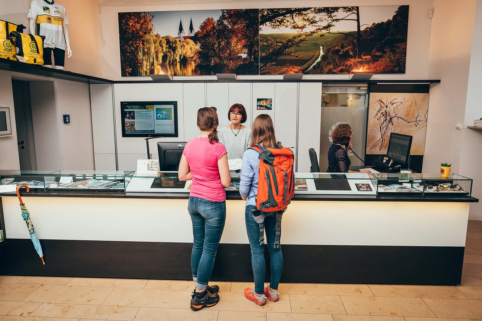 In der Tourist-Information des Informationszentrums finden Gäste Hilfe bei der Suche nach Unterkünften und erhalten Tipps, Prospekte oder Kartenmaterial. Eine kleine Auswahl an Souvenirs und Produkten aus dem Naturpark ergänzt das Angebot.