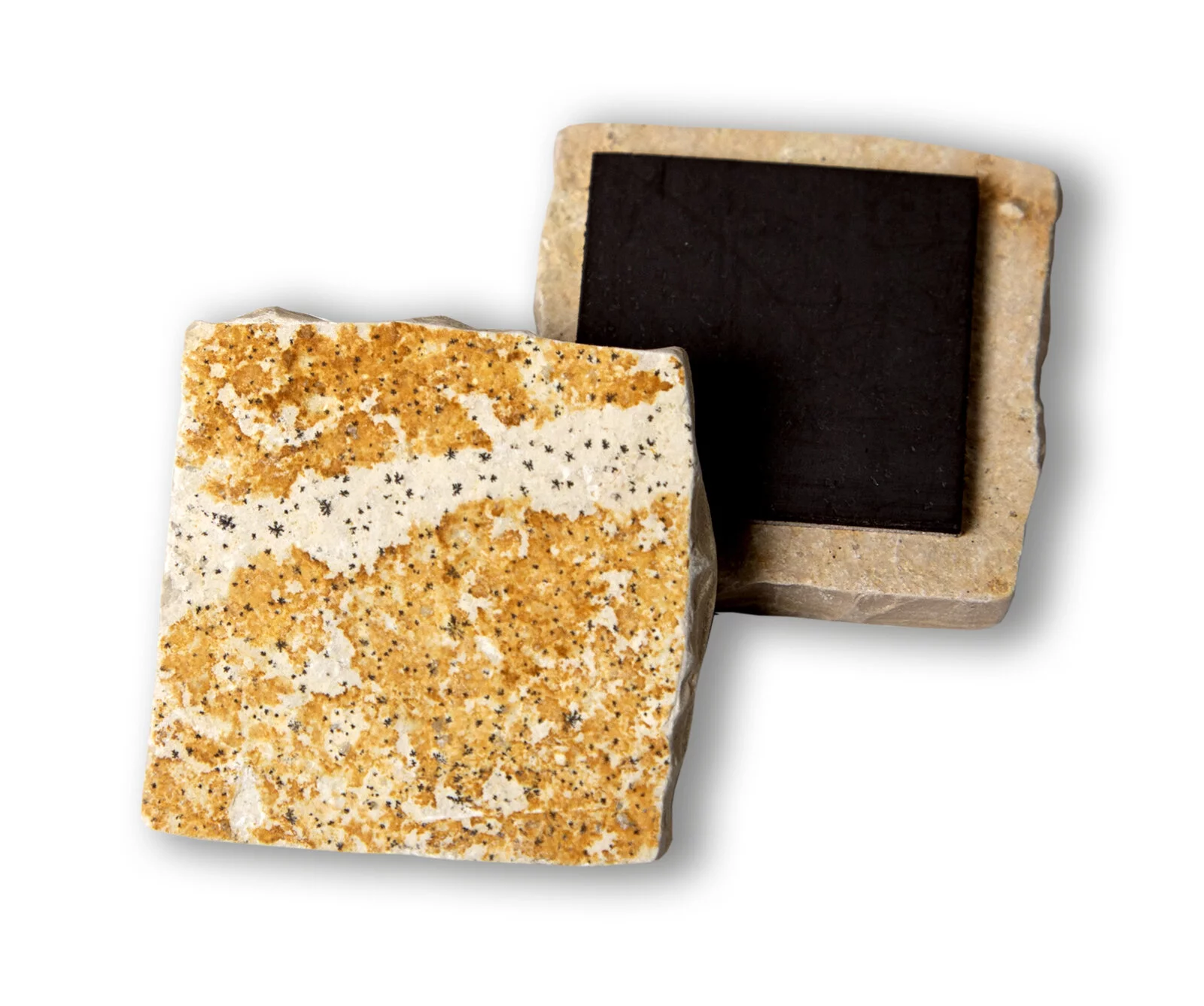 Ein Stückchen Stein aus dem größten zusammenhängenden Natursteinabbaugebiet Deutschlands auf einem Kühlschrankmagnet - das ist ein Andenken an den Naturpark Altmühltal par excellence.