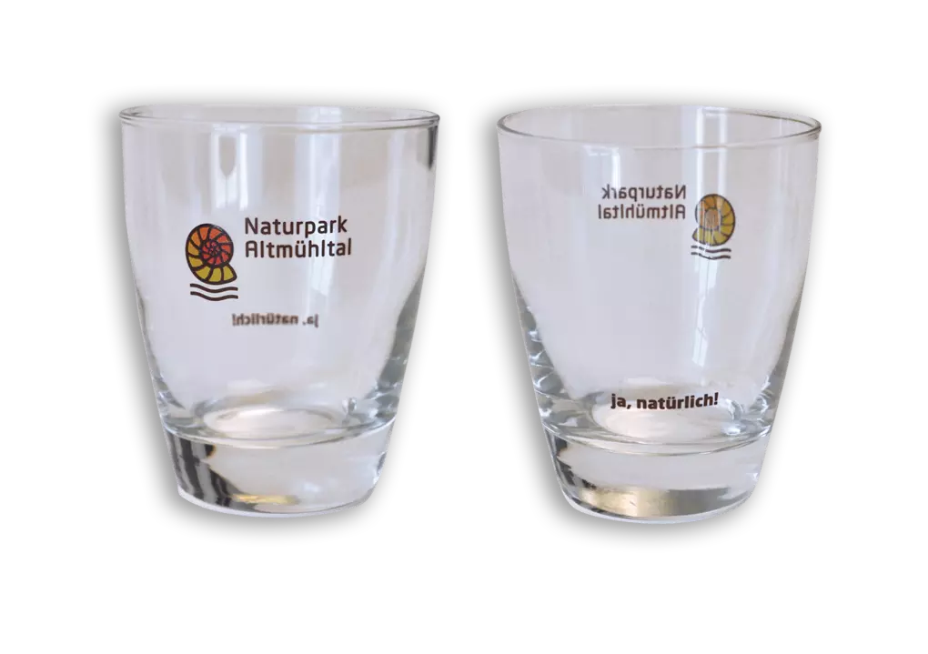 Hochwertiges Glas farbig bedruckt und spülmaschinenfest.