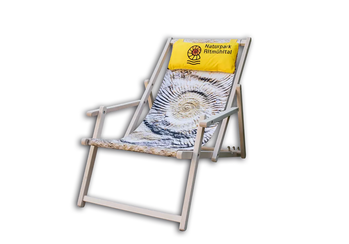 Ein schöner Holzliegestuhl aus stabilem europäischen Holz. Der Liegestuhl ist höhenverstellbar, mit Armlehnen und einem bequemen Kopfkissen.