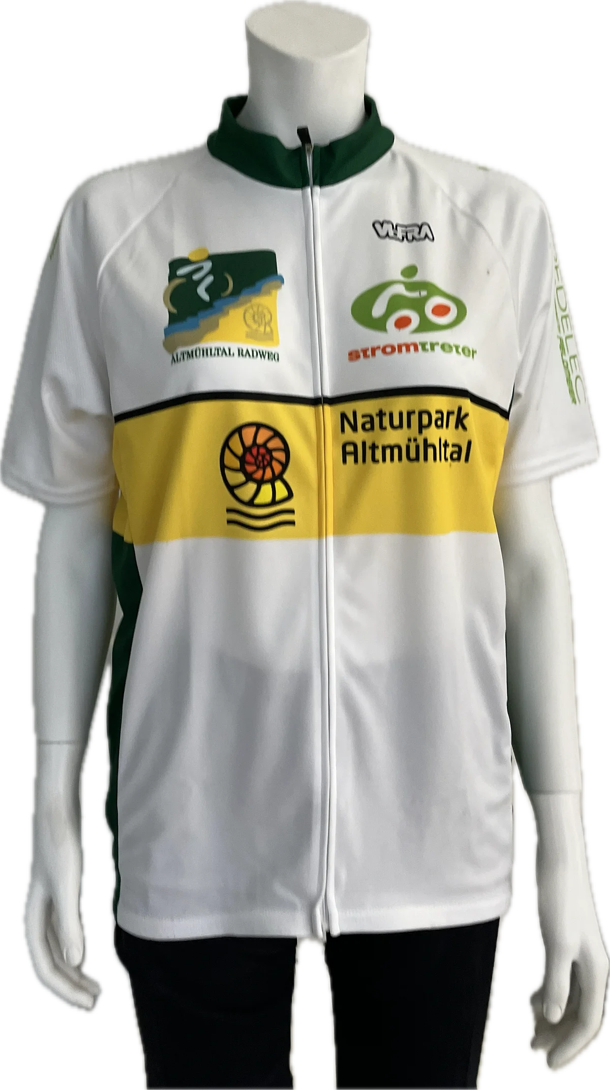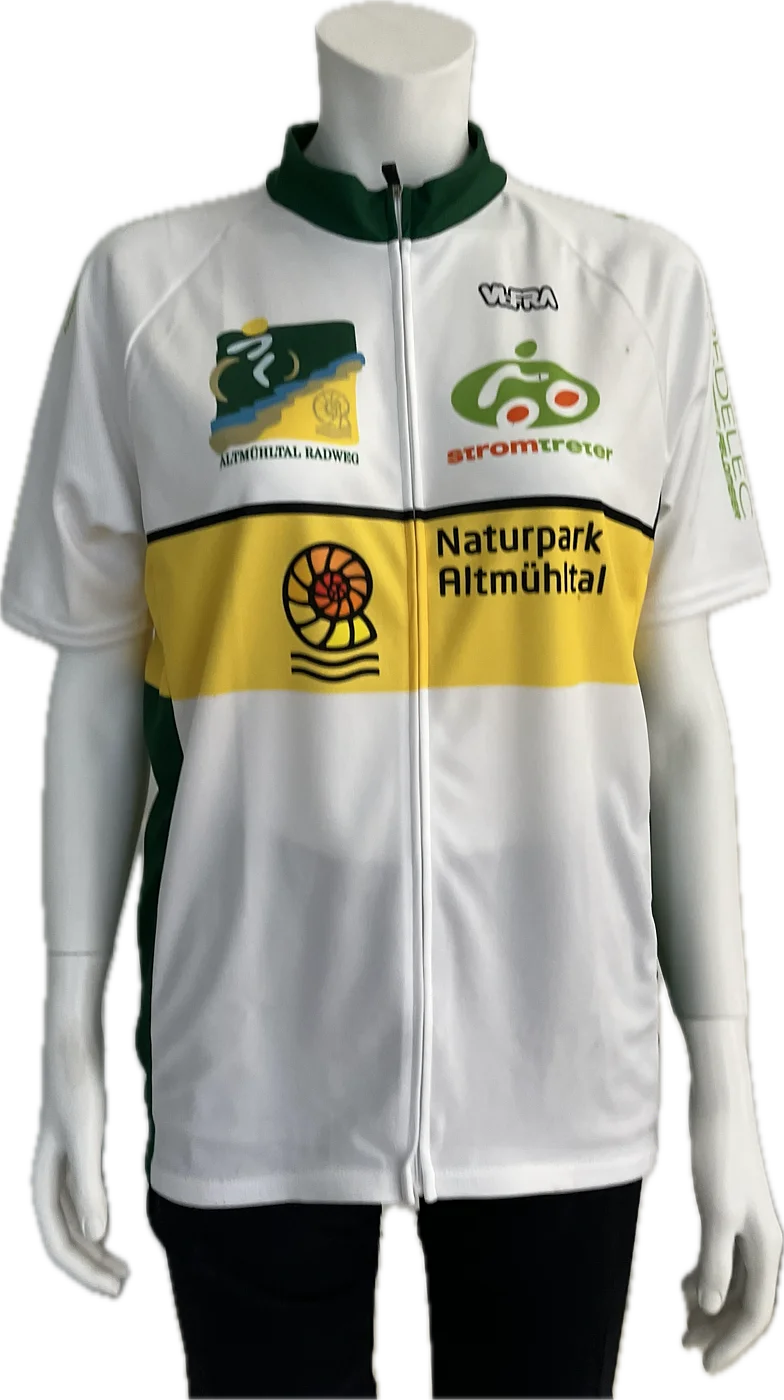 Das Kurzarmtrikot im Naturpark-Look verfügt über einen Stehkragen, einen Frontreißverschluss und eine dreigeteilte Rückentasche. Eine der Rückentaschen ist zusätzlich mit einem per Reißverschluss verschließbaren Außentäschchen versehen.