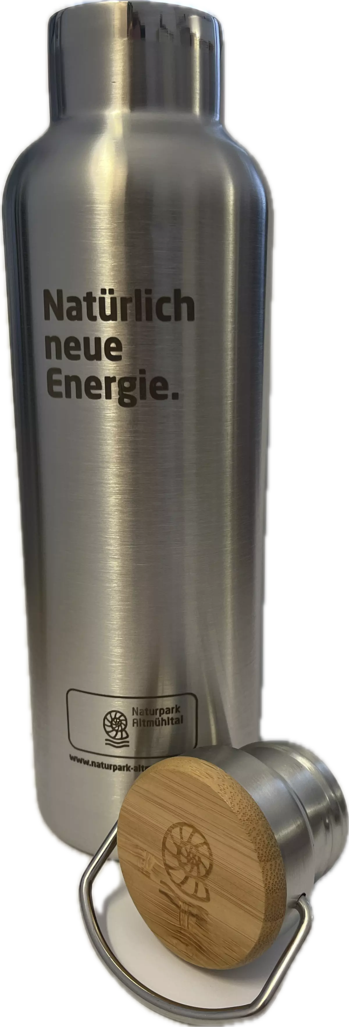 Die hochwertige Trinkflasche mit Gravur "Naturpark Altmühltal" und praktischem Bambusdeckel besteht aus 18/8 Edelstahl und hält bis zu 13 Stunden warm und bis zu 25 Stunden kalt.