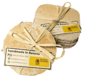 Die dekorativen Untersetzer werden aus heimischen Naturstein in aufwendiger Handarbeit gefertigt und sind in rund und halbeckig erhältlich.