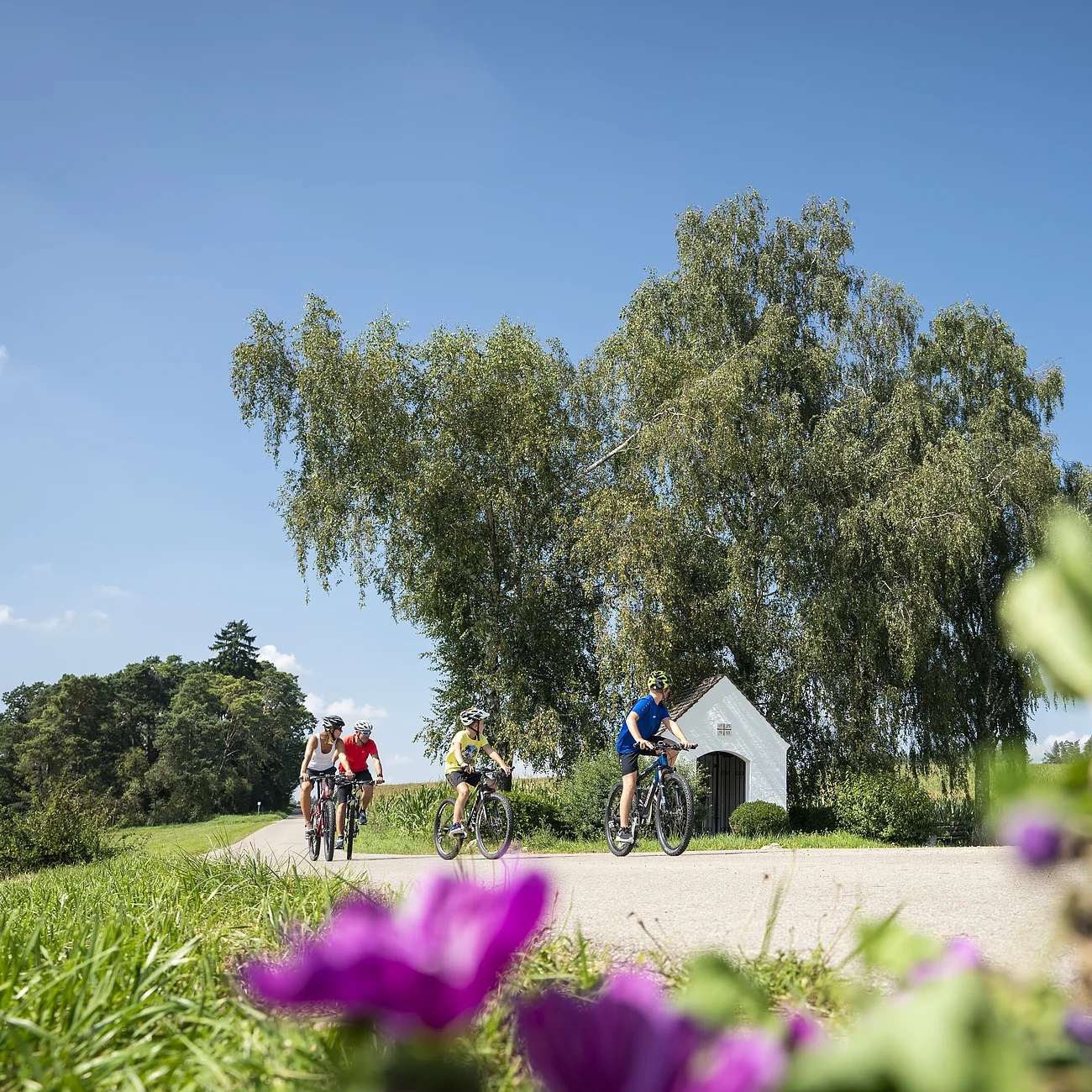 Graveln ist Trend – und in Monheim sind die Bedingungen dafür bestens. Etwa auf der Tour „Grandiose Ausblicke, verwunschene Orte und abenteuerliche Abfahrten". Die 61 Kilometer lange Runde macht ihrem Namen mit Blicken in den Rieskrater und einer Station an der Ruine der Uhlbergkapelle alle Ehre.
