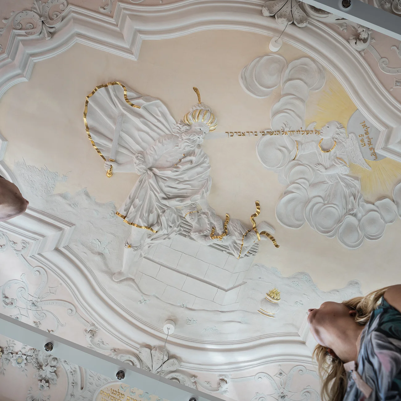 Bevor man weiter der Lauschtour folgt, ist ein Blick ins Rathaus-Innere ein Muss. Der jüdische Kaufmann Abraham Elias Model ließ das Gebäude im 18. Jahrhundert errichten und mit aufwendigen Stuckdecken ausstatten. Sie zeigen biblische Szenen und können während der Öffnungszeiten der Stadtverwaltung besichtigt werden.
