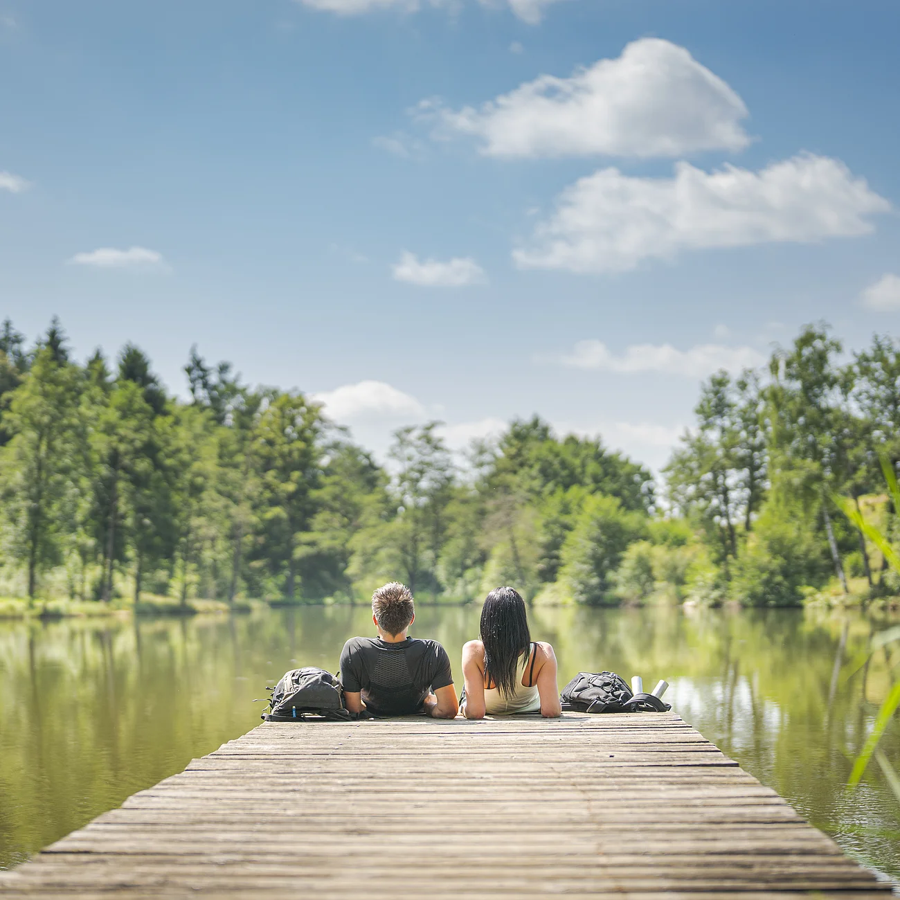 Ob vor oder nach dem Waldspaziergang, ein Zwischenstopp an der Kneipp-Anlage tut gut. Zusätzlich kann man auf dem Barfußpfad verschiedenen Untergründen nachspüren.