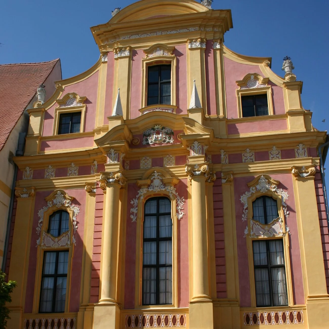 Schon zieht die Fassade der Provinzialbibliothek mit ihren Zuckerbäckerfarben die Blicke auf sich. Das prächtige Innere ist im Rahmen einer Führung zugänglich, die vorab gebucht werden kann.