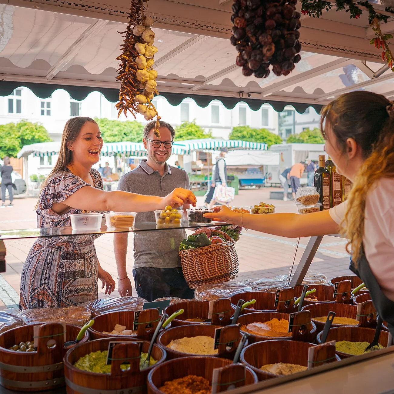 Nach so vielen Eindrücken aus Neuburgs Vergangenheit holt die lebendige Geschäftswelt alle schnell wieder in die Gegenwart: Feine Pralinen, frisch gerösteter Kaffee, Mode und Souvenirs oder Frisches vom Wochenmarkt – hier gibt es jede Menge zu entdecken.