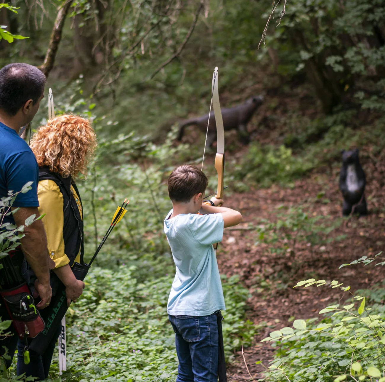 Auf den Spuren von Robin Hood durch den Wald: Der 3D-Bogenschieß-Parcours lädt ein zum aufregenden Abenteuer. An insgesamt 36 Stationen lässt es sich den Umgang mit Pfeil und Bogen üben.