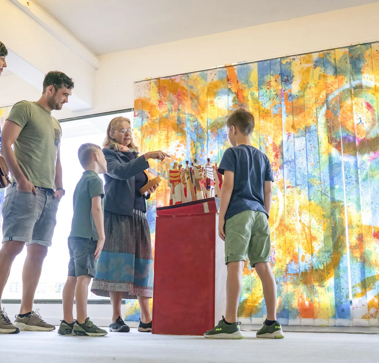 Wie klingen eigentlich die verschiedenen Gesteinsarten des Rieskraters? Auf diese Frage gibt die Kinder-Erlebnisstation eine tönende Antwort. Dort warten Blöcke aus verschiedenen Gesteinen aus dem Rieskrater, deren Klang die Kinder mithilfe der angebrachten Klangstäbe erforschen können. Für Spaß sorgt außerdem das große Memory mit seinen drehbaren Spielelementen.