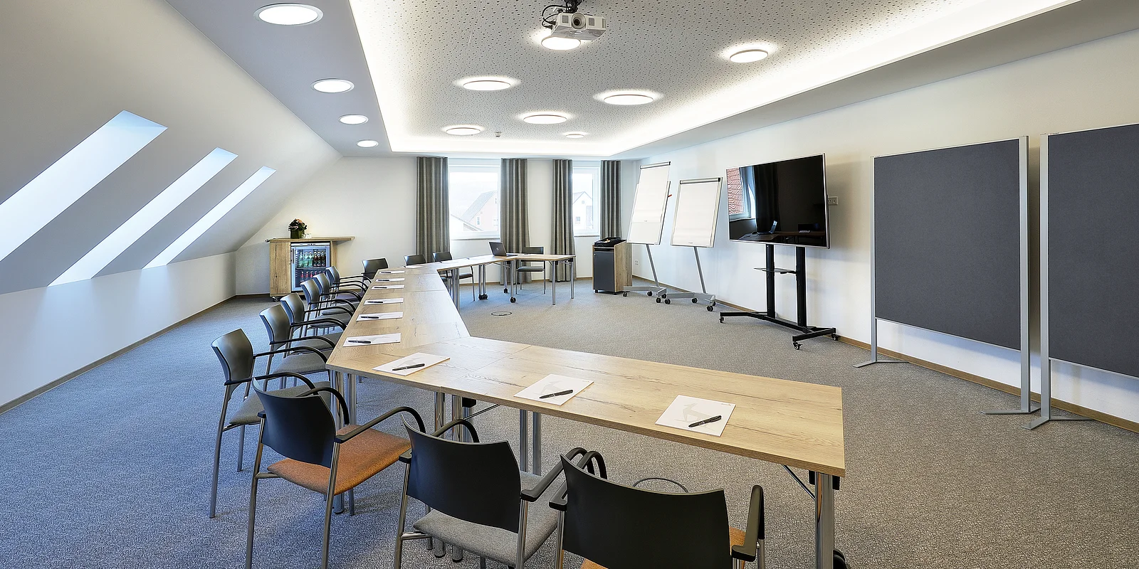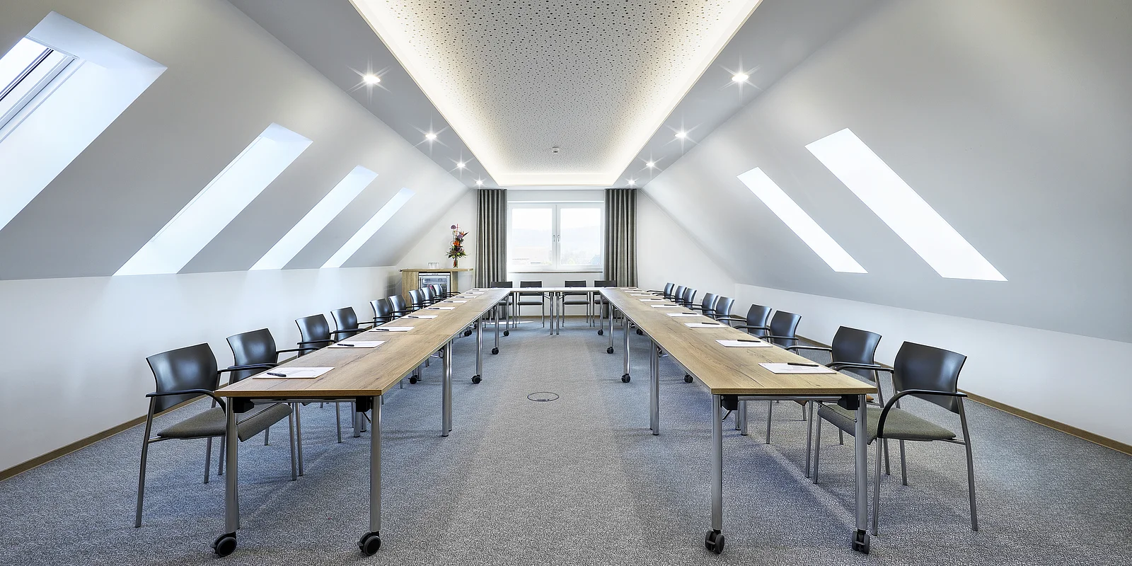 Wir bieten Ihnen in unseren insgesamt 14 neuen Tagungs- und Seminarräumen von 23 bis 145 m² Größe modernste Tagungstechnik in elegantem Design.