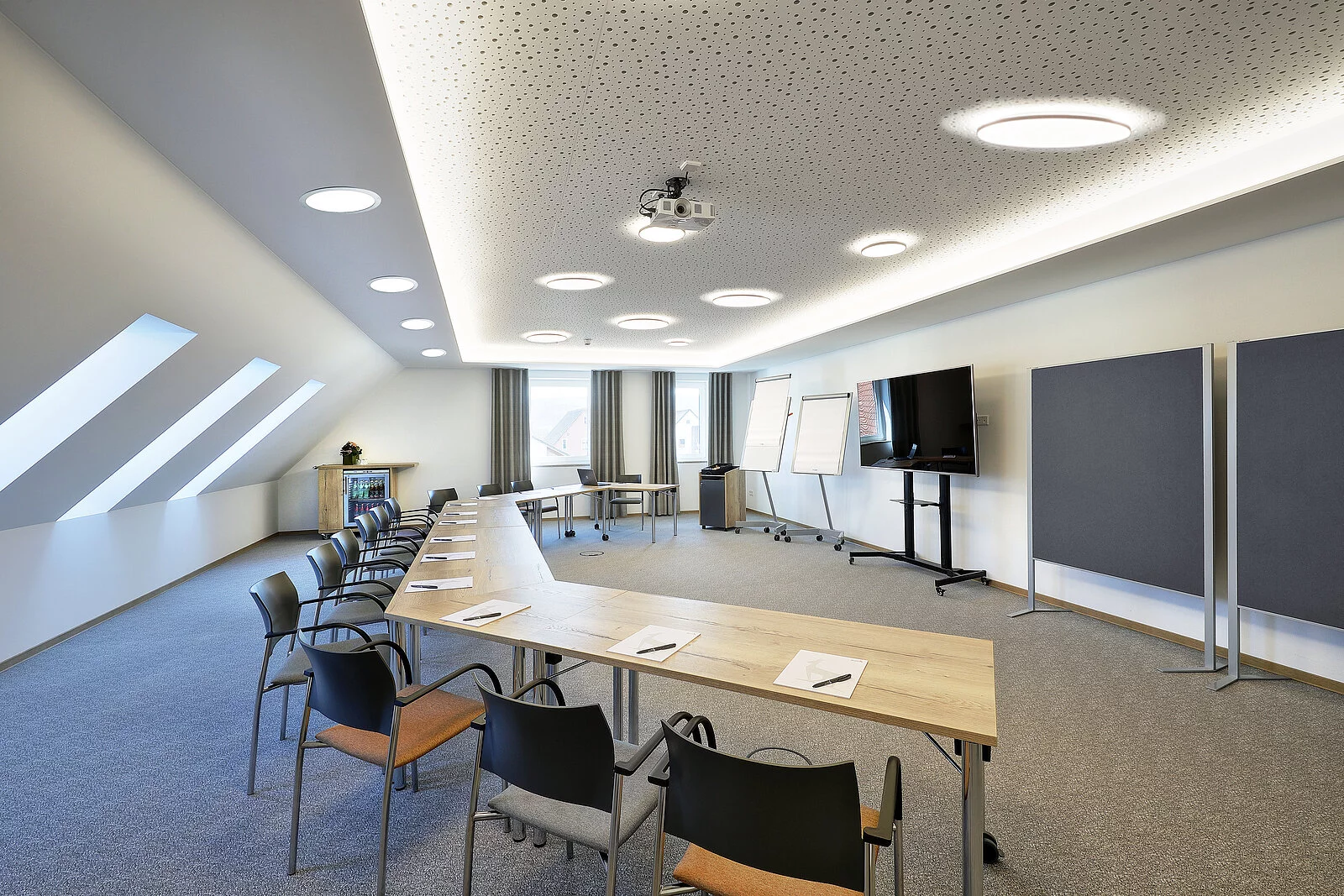 Wir bieten Ihnen in unseren insgesamt 14 neuen Tagungs- und Seminarräumen von 23 bis 145 m² Größe modernste Tagungstechnik in elegantem Design.