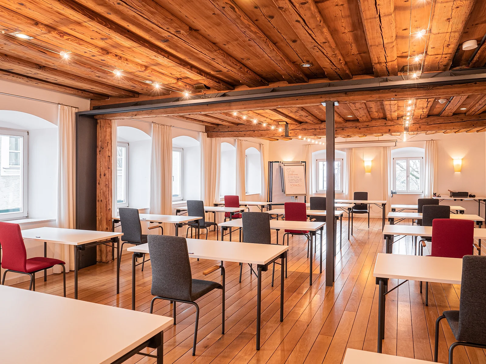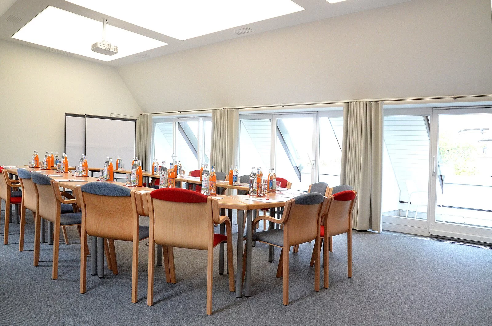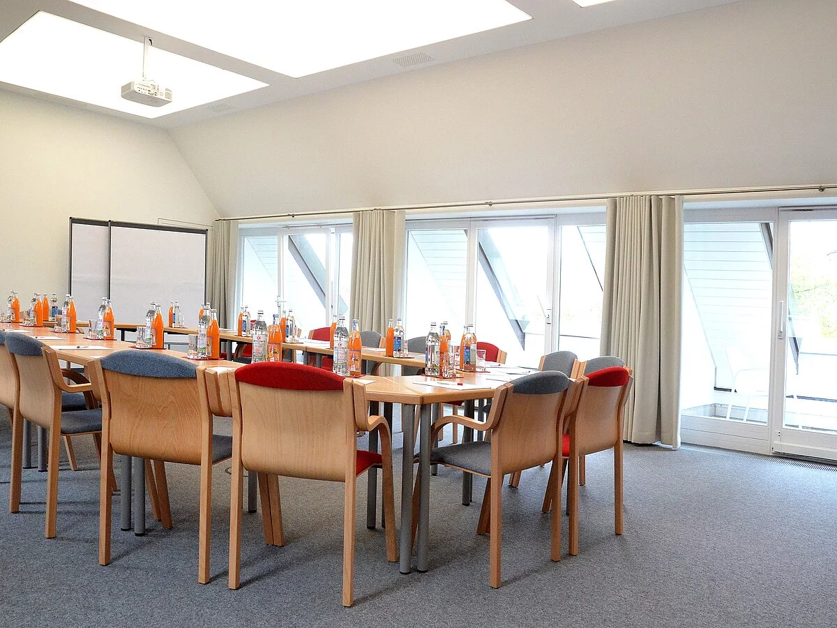 • Technische Ausstattung: Alle Räume sind ergonomisch möbliert und mit modernster Technik ausgestattet, um die Präsentationen und Vorträge zu unterstützen. Beamer, Flipchart und Pinnwände gehören zur Standardausstattung, ebenso wie Tageslicht.