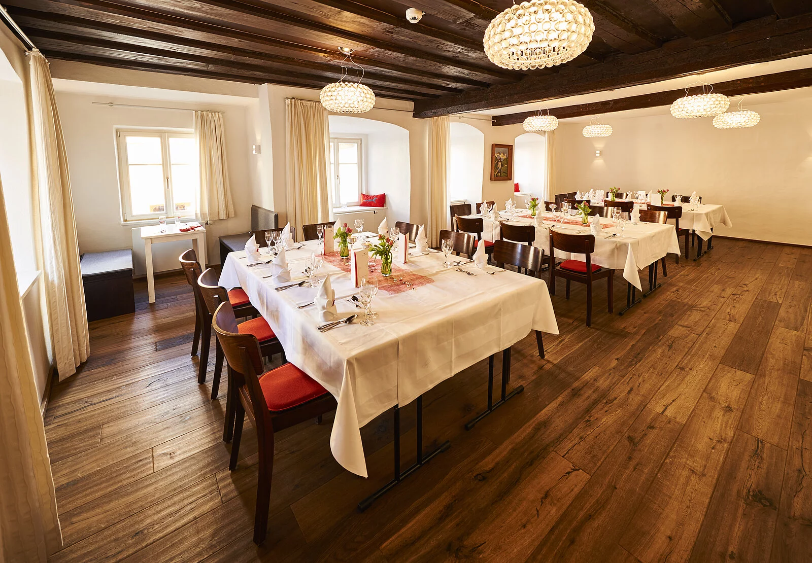 Feiern im Fuchsbräu – stilvoll, herzlich, unvergesslich Sie planen eine Feier und suchen den passenden Rahmen? Im 4-Sterne-Hotel Fuchsbräu sind Sie in den besten Händen! Mit unserer langjährigen Erfahrung, viel Herzblut und Liebe zum Detail unterstützen wir Sie dabei, Ihr Fest ganz nach Ihren Wünschen zu gestalten. Ob Firmenfeier, Familienfest oder Jubiläum – bei uns finden Sie für jeden Anlass den passenden Raum: festlich in unseren historischen Volpini-Räumen, im eleganten Saal, Wintergarten oder der urigen Fuchs’n Stube. Für eine lockere Atmosphäre ist unsere stilvolle Kaiserbeck-Bar mit Lounge-Bereich ideal. Und wer lieber draußen feiert, kann unseren idyllischen Biergarten mit Tanzfläche und Live-Musik genießen. Das besondere Ambiente aus historischen Gebäuden und moderner Architektur, kombiniert mit regionaler, saisonaler Küche nach dem Slow-Food-Prinzip, macht Ihre Feier zu einem echten Erlebnis – gut, sauber und fair. Lassen Sie sich und Ihre Gäste von unserem Service- und Küchenteam verwöhnen – wir freuen uns darauf, gemeinsam mit Ihnen unvergessliche Momente zu schaffen.