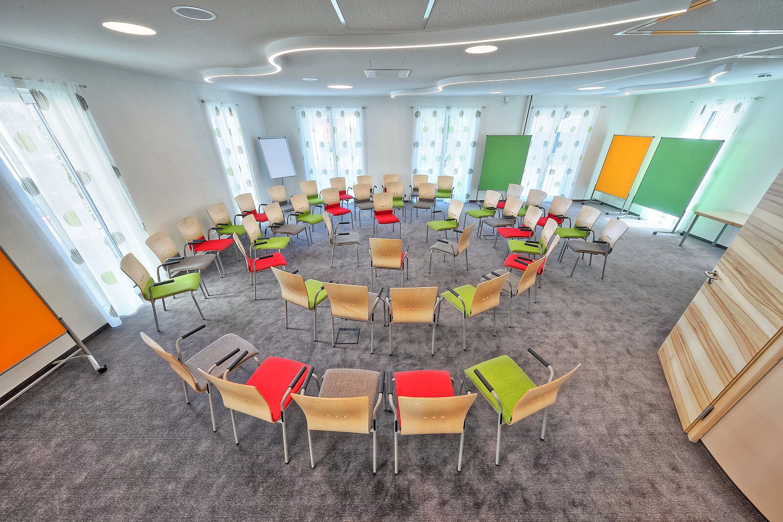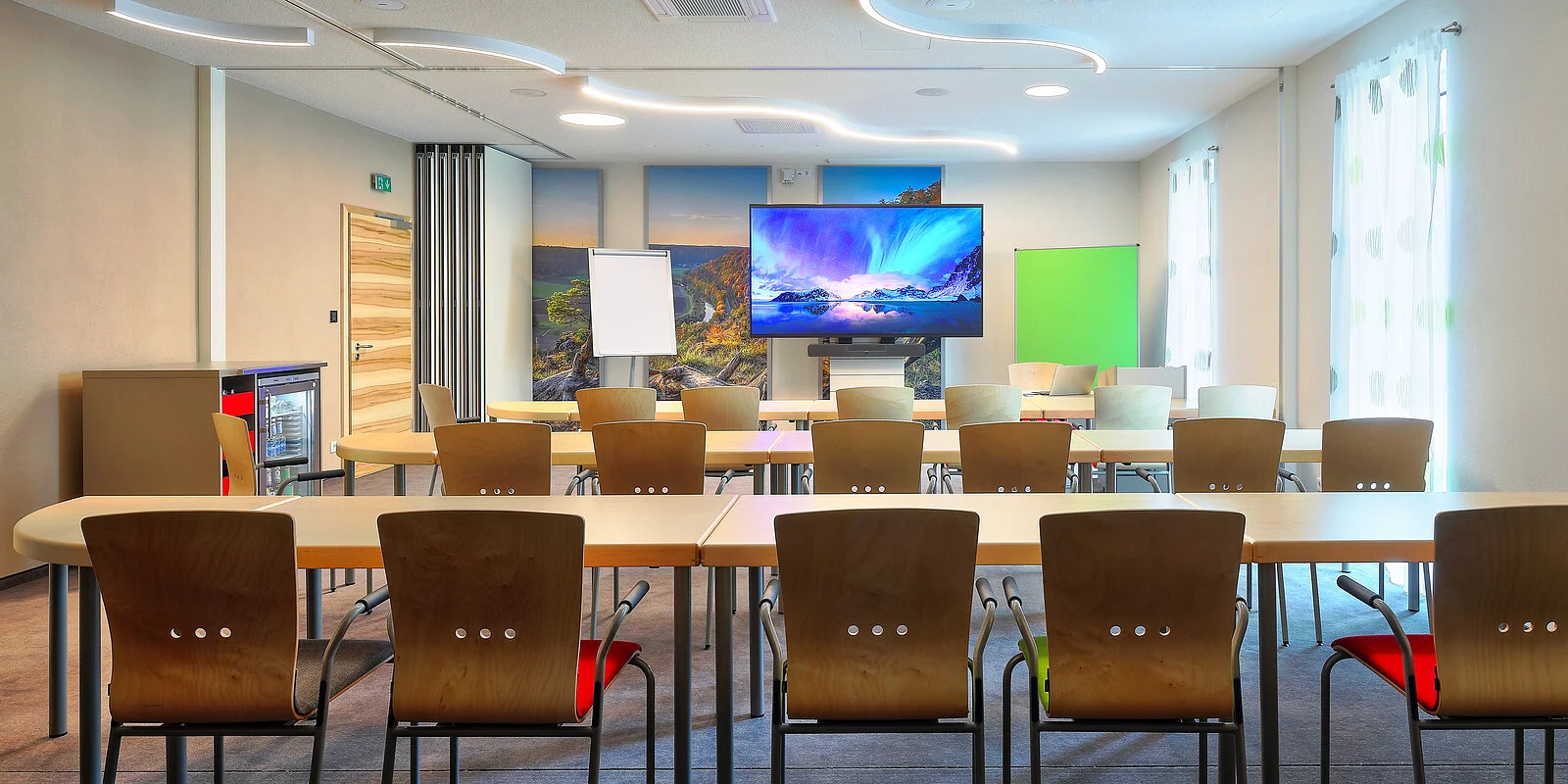 Die Seminarräumlichkeiten sind alle klimatisiert und befinden sich sowohl im Haupthaus als auch räumlich getrennt in unserem NEUEN Kramerhaus. Durch flexible Trennwände und variabel einsetzbares Mobiliar schaffen wir ausreichend Platz für kleine und große Tagungsgruppen. Gerne gestalten wir unsere Seminarräume ganz nach Ihren individuellen Anforderungen und bereiten die gewünschte Tagungstechnik vor. Entspanntes und erfolgreiches Tagen ist hier bei uns selbstverständlich. Weder Lärm noch Hektik werden Sie von Ihrer Tagung ablenken. Zusätzlich verfügen wir über einen "Aerosolfreien" Tagungs- und Seminarraum im Freien! Und für das Wohlfühlklima in den Pausen ist ebenfalls bestens gesorgt: Bedienen Sie sich an unserer eigens dafür installierten Teeküche und den Kaffeespezialitäten-Automaten und stärken Sie sich mit Getränken und kleinen Snacks.