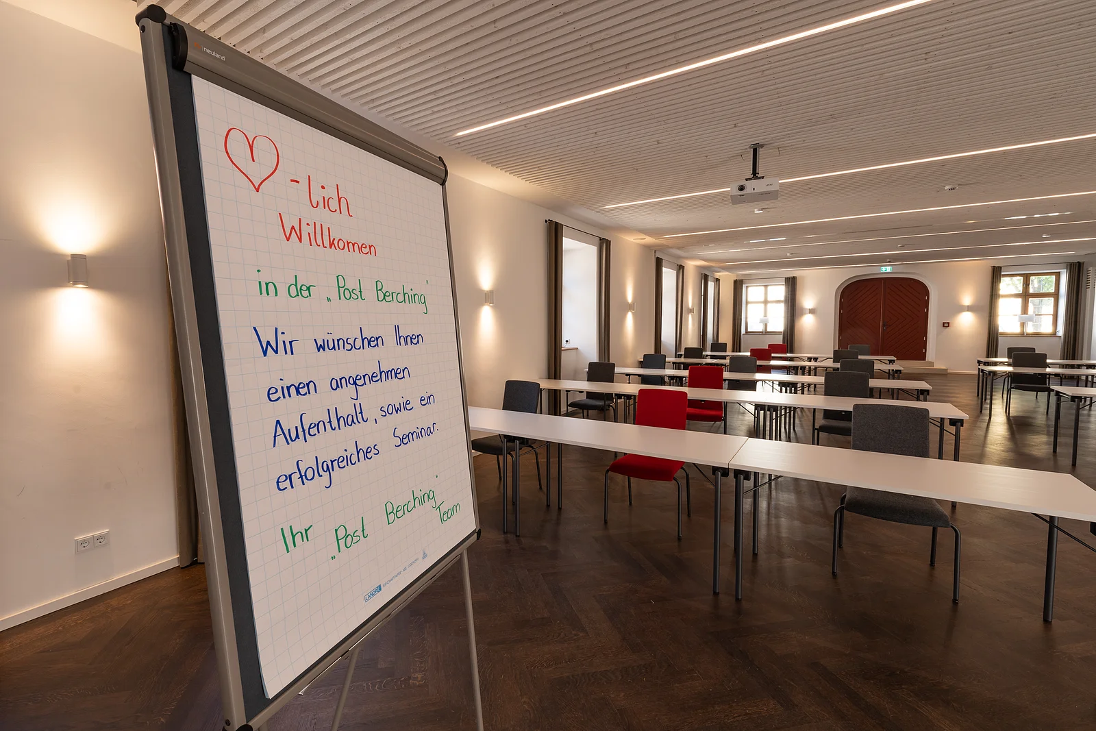 • Technische Ausstattung: Alle Räume sind ergonomisch möbliert und mit modernster Technik ausgestattet, um die Präsentationen und Vorträge zu unterstützen. Beamer, Flipchart und Pinnwände gehören zur Standardausstattung, ebenso wie Tageslicht.