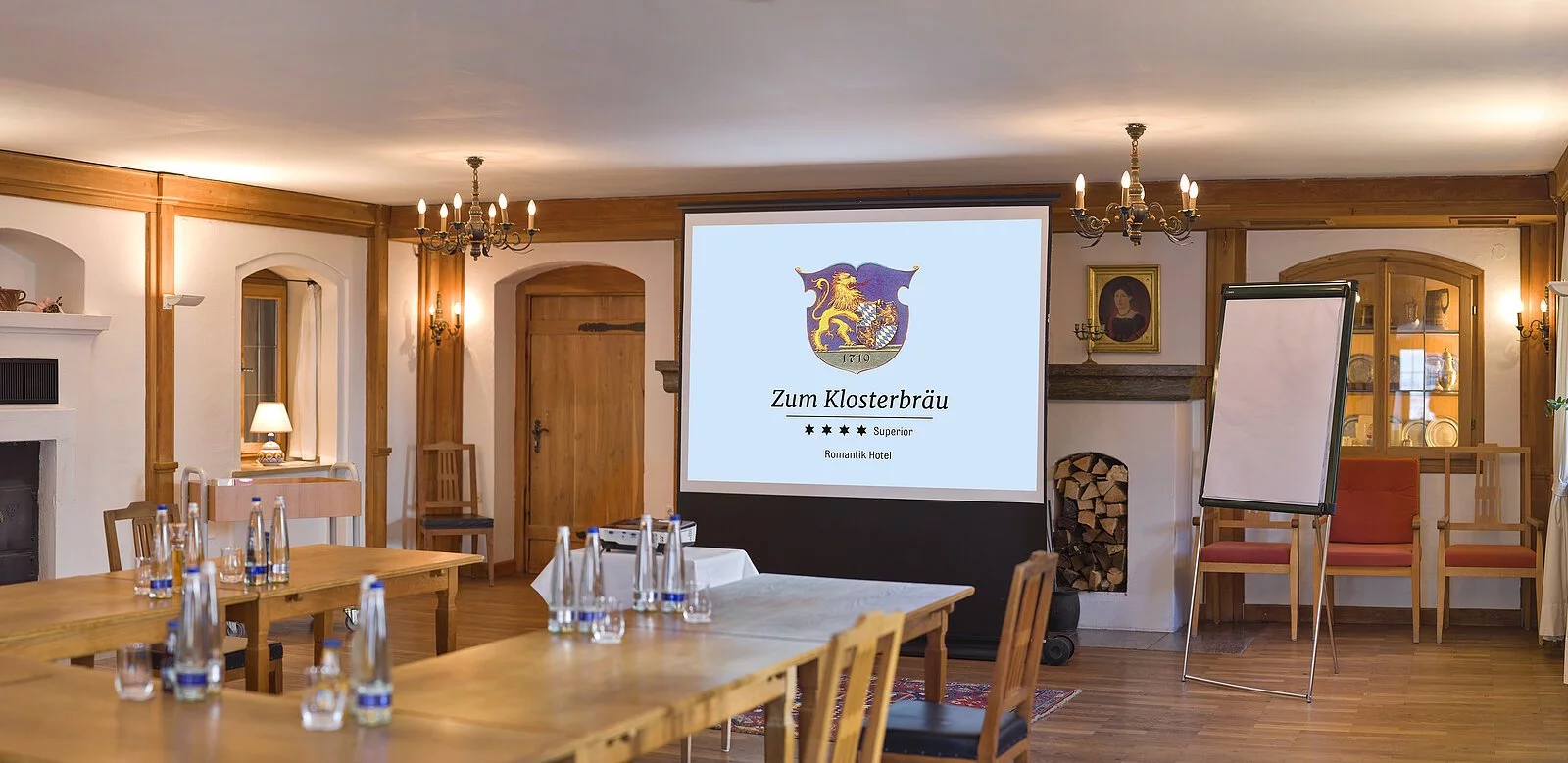 IHR TAGUNGSHOTEL IM NATURPARK ALTMÜHLTAL Das Romantik Hotel Zum Klosterbräu im Naturpark Altmühltal ist Ihr ideales Tagungshotel für erfolgreiche Events. Optimal im Städtedreieck München, Augsburg und Nürnberg gelegen. INSPIRIERENDE SEMINARRÄUME Unsere lichtdurchfluteten Seminarräume bieten Platz für bis zu 80 Personen und sind mit modernster Technik ausgestattet. Die angenehme Atmosphäre fördert kreative Ideen und produktives Arbeiten. FLEXIBLE VERANSTALTUNGSPLANUNG Ob Meeting, Jubiläum oder Teambuilding – im Romantik Hotel Zum Klosterbräu gestalten wir Ihre Veranstaltung nach Ihren Wünschen. Unser erfahrenes Team sorgt für einen reibungslosen und stilvollen Ablauf bei uns im Herzen Bayerns. ENTSPANNUNG NACH DER TAGUNG Nach einem erfolgreichen Tag entspannen Sie in unserem Wellnessbereich mit ganzjährig beheiztem Outdoor-Pool (29°C), Sauna und Dampfbad. Die malerische Umgebung des Naturparks Altmühltal lädt zu Spaziergängen und Outdoor-Aktivitäten ein.