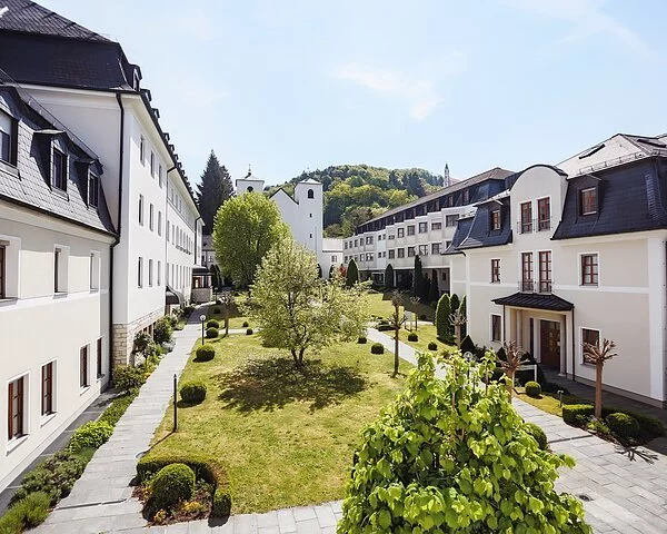 Das Kloster St. Josef liegt nahe der Innenstadt, aber in absolut ruhiger Umgebung unterhalb des Mariahilfbergs, geschützt durch den weitläufigen Klosterpark mit alten Baumriesen und romantischen Spazierwegen. Hier kann man in den Seminarpausen aufatmen und den Kopf frei bekommen.