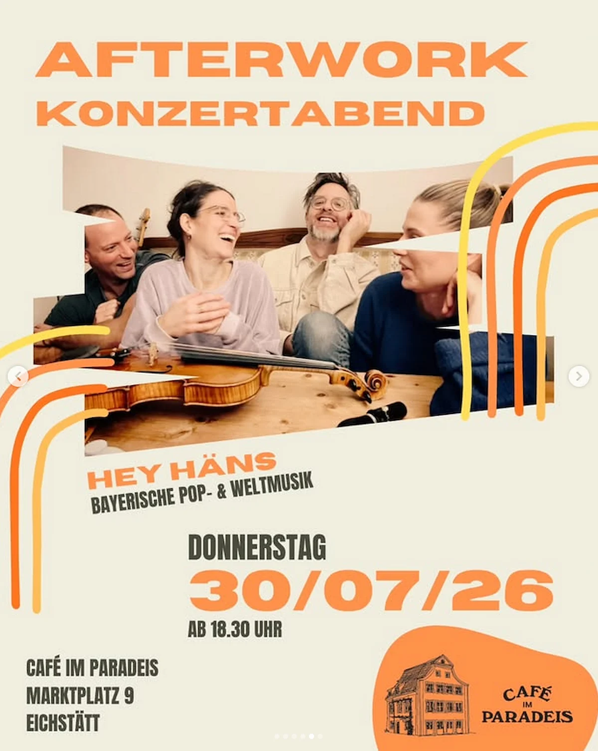Auch in diesem Jahr wird es wieder an ausgewählten Donnerstagen parallel zu den Blasmusik-Frühschoppen am Samstag Afterwork Konzerte am Abend geben. Wie immer sind die Genres der Auftritte bunt gemischt, von swingendem Jazz, über Soul, Rock & Indie hin zu bayerischer Popmusik ist für jeden etwas dabei 🎶