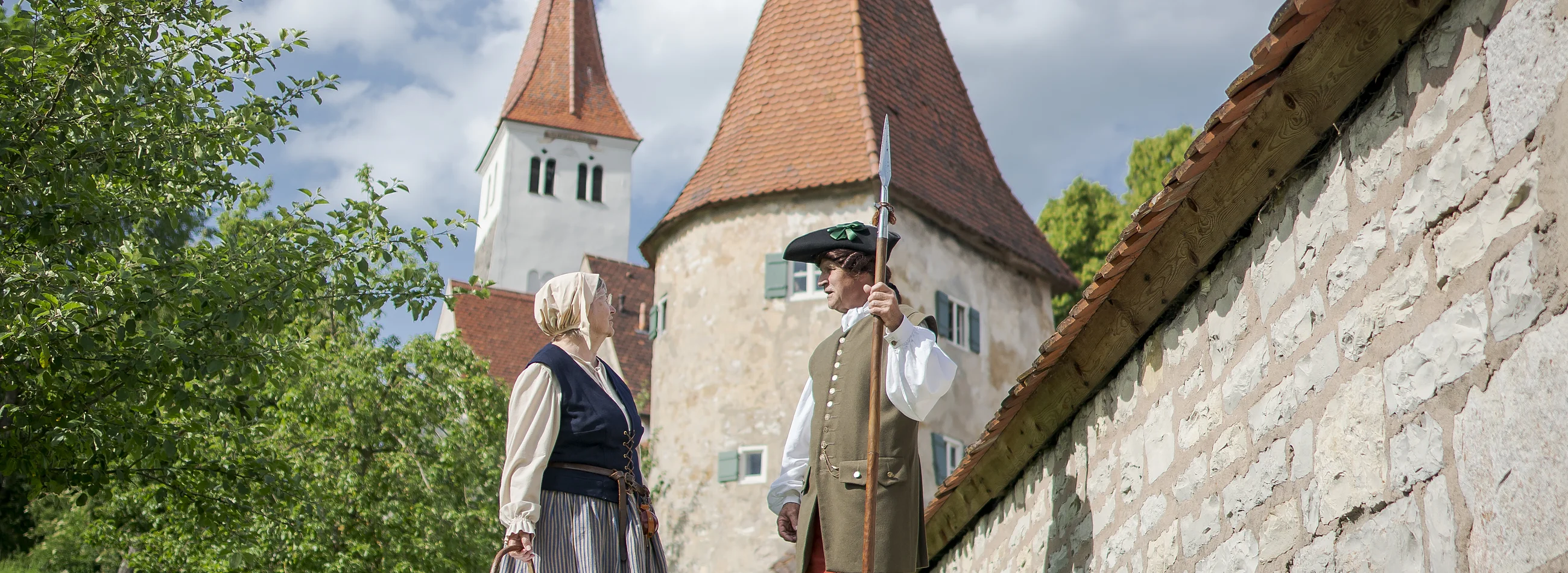 In Gredings historischer Altstadt wandelt man auf Schritt und Tritt auf den Spuren der Vergangenheit. Die romanische Basilika St. Martin mit einem der letzten drei romanischen Karner Bayerns, das Fürstbischöfliche Jagdschloss oder das barocke Rathaus: In den zahlreichen, romantischen Gässchen gibt es Vieles zu entdecken. Besonders spannend und unterhaltsam ist diese Reise in längst vergangene Zeiten stets dann, wenn man sie zusammen mit geheimnisvollen Gestalten aus dem 18. Jahrhundert antreten kann: Egal, ob der ehrwürdige fürstbischöfliche Jäger Hubert oder die beredte Zimmermannswitwe Barbara Fuchsin: Unsere Stadtführer verstehen es, mit spannenden Anekdoten und Geschichten das Zeitalter des Barock in Greding wieder aufleben zu lassen. Machen Sie sich auf in unsere lebendige Stadtgeschichte - Sie sind herzlich zu einem ganz besonderen Streifzug in die Vergangenheit eingeladen!
