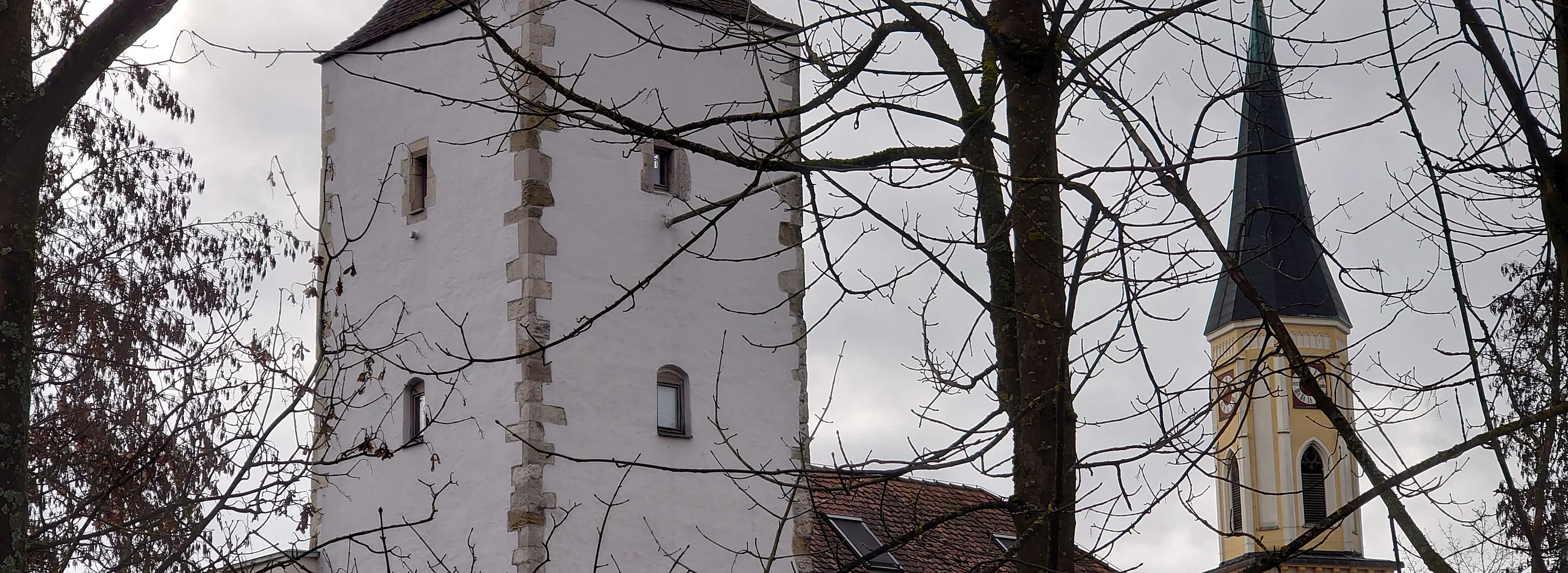 Der sogenannte Erasmusturm ist das letzte Überbleibsel einer Kirche aus dem 14. Jahrhundert, die im Jahr 1803 im Zuge der Säkularisation abgebrochen worden ist. Der ehemalige Chorraum ist im Erdgeschoss des Turms noch erhalten, der im Zuge der Besichtigung geöffnet wird. Nach seiner Sanierung beherbergt das archaisch anmutende Gebäude samt dem angrenzenden Jurahaus ein Hotel.
