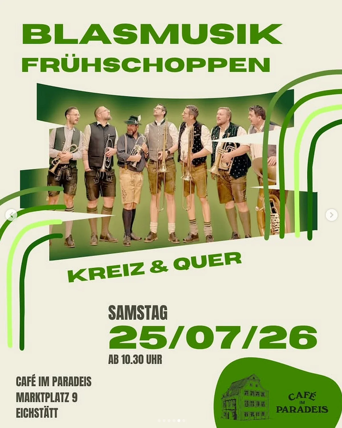 Der Sommer steht vor der Tür und damit beginnt bei uns auch wieder die Zeit der Blasmusik Frühschoppen. An fünf Vormittagen spielen wieder kleine Gruppen aus Eichstätt & der Region bei uns auf.