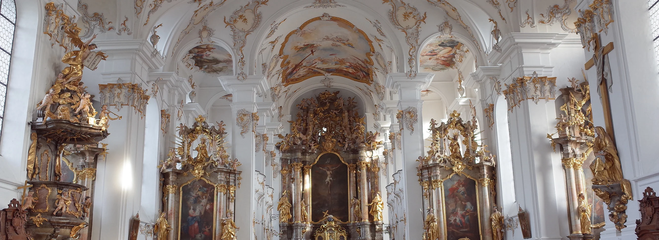 Beeindruckend ist das Münster Hl. Kreuz mit barockem Kirchenschiff und romanischem Turm. Die Fresken der Wallfahrtskirche zählen zu den herausragenden Deckenmalereien des süddeutschen Rokokos.Bei der Besichtigung erfahren Sie, warum hier eimal ein sehr bedeutender Wallfahrtsort war und beim Abstieg in die romanische Krypta fühlen Sie sich ein eine Zeit vor vielen hundert Jahren zurückversetzt,