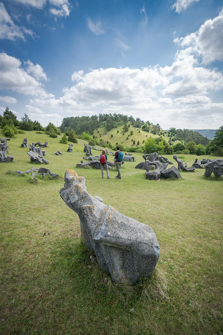 Der Tourstart liegt zwischen Eichstätt und Landershofen: Vom Parkplatz aus folgen wir der Markierung durch das Hessental. Eine Besichtigung des Figurenfelds von Alois Wünsche-Mitterecker lohnt sich. Markierung Nr. 8. Der Weg führt uns weiter bis zu einem mächtigen Lindenbaum mit kleiner Kapelle nahe des Häringhofes. Hier wählen wir den Weg nach rechts in Richtung Ziegelhof. Durch Wald und Feld wandern wir am sogenannten Schwarzen Kreuz vorbei auf dem Wallfahrerweg, einem der ältesten Kreuzwege Bayerns, nach Buchenhüll. Wir verlassen den Kreuzweg an der "Lourdes-Grotte" und gehen weiter rechts am Waldrand entlang. Durch den Wald talwärts gelangen wir auf den Altmühltal-Panoramaweg, kommen an eine Ruhebank mit schöner Aussicht auf das römische Kastell Pfünz Castra Vetoniana und gehen in der wunderschönen Wacholderheide im Naturschutzgebiet Altmühlleiten Richtung Landershofen. Oberhalb der Siedlung verlassen wir den Panoramaweg und begeben uns mitten durch die Ortschaft, über den Bolzplatz auf den Hügel und kommen direkt an den Wanderparkplatz zurück.