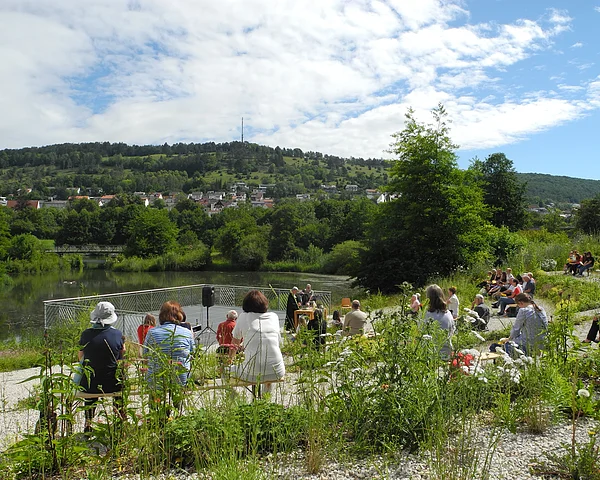 Treffpunkt ist an der Seebühne, am Stadtweiher.