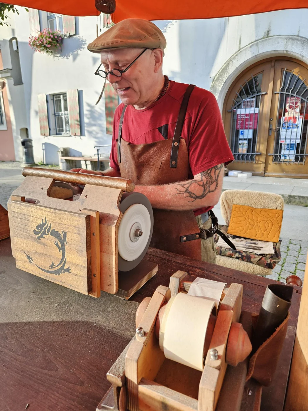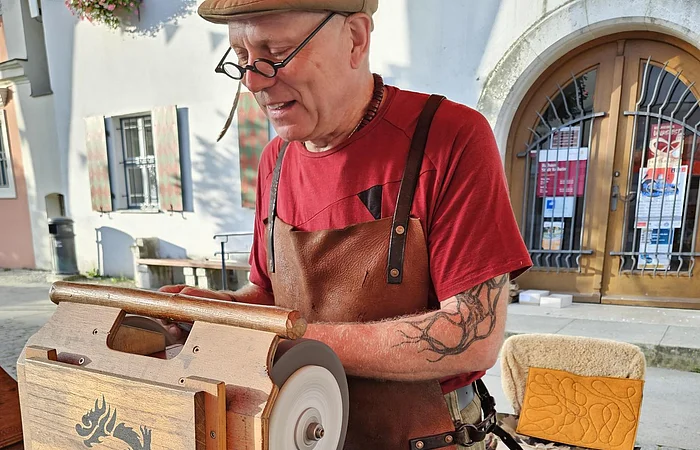 Harald Welzel aus Deggendorf wird von 7:00 bis 13:00 Uhr direkt vor dem Rathaus seine Künste als Messer- und Scherenschleifer präsentieren und auch Werkzeuge wieder auf Vordermann bringen. Die Klingen werden vor Ort bearbeitet und können noch am selben Tag wieder abgeholt werden.