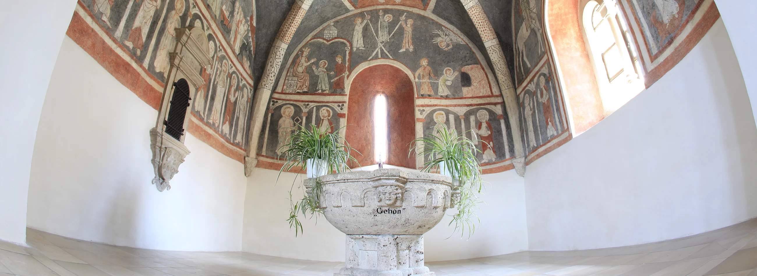 Aus dem 13. Jahrhundert stammen die ältesten Teile des Gotteshauses (Untergeschoss des Westturms). Um 1310 wurde der Chor der Kirche, jetzt Vituskapelle mit Fresken ausgestattet, die noch sehr gut erhalten sind und eine Sehenswürdigkeit von hohem kunst- und kulturhistorischem Wert darstellen.