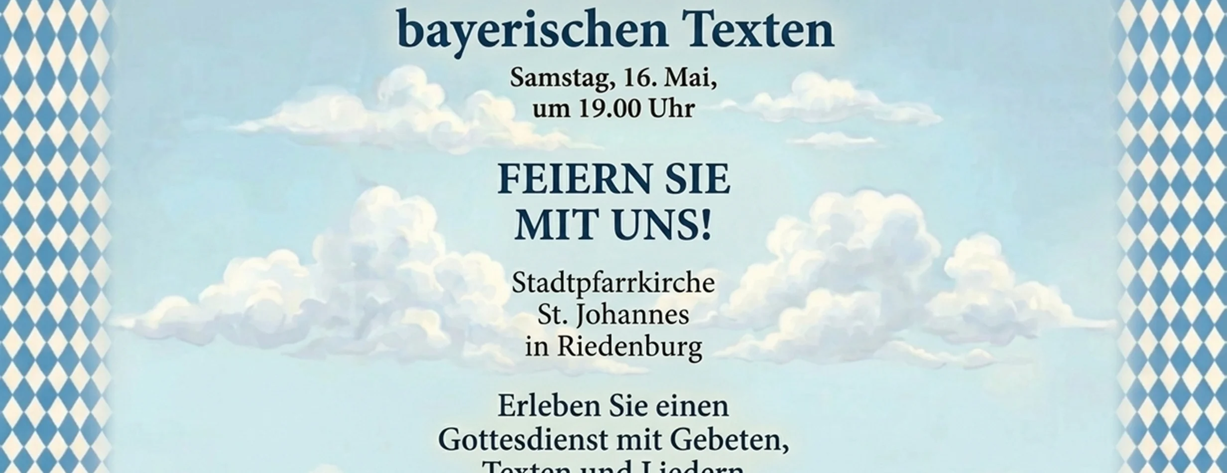 Erleben Sie einen besonderen Gottesdienst, der unsere bayerische Heimat und den Glauben auf herzliche Weise verbindet. Gebete, Texte und Lieder erklingen im vertrauten bayerischen Dialekt – so, wie es von Herzen kommt.
