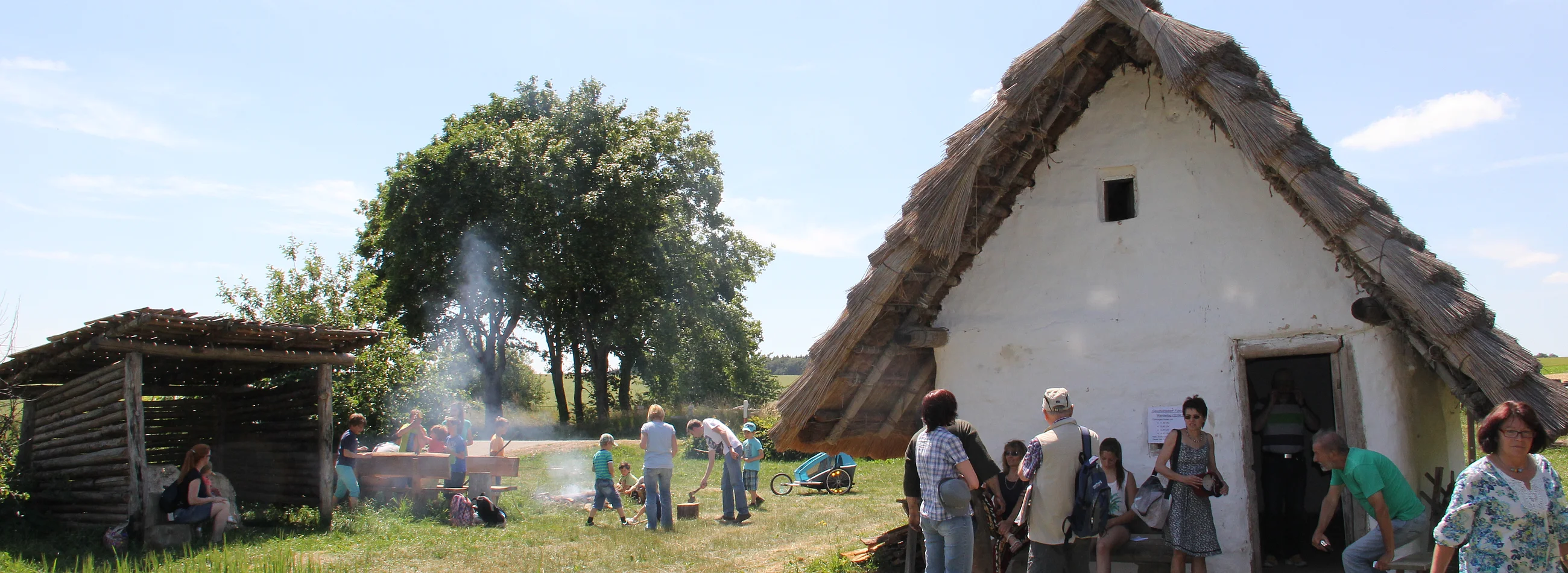 Beim traditionellen Keltenfest lebt das Geschichtsdorf Landersdorf: Darsteller und Darstellerinnen in zeittypischen Gewändern führen Handwerkskünste aus ihrer Zeit vor.