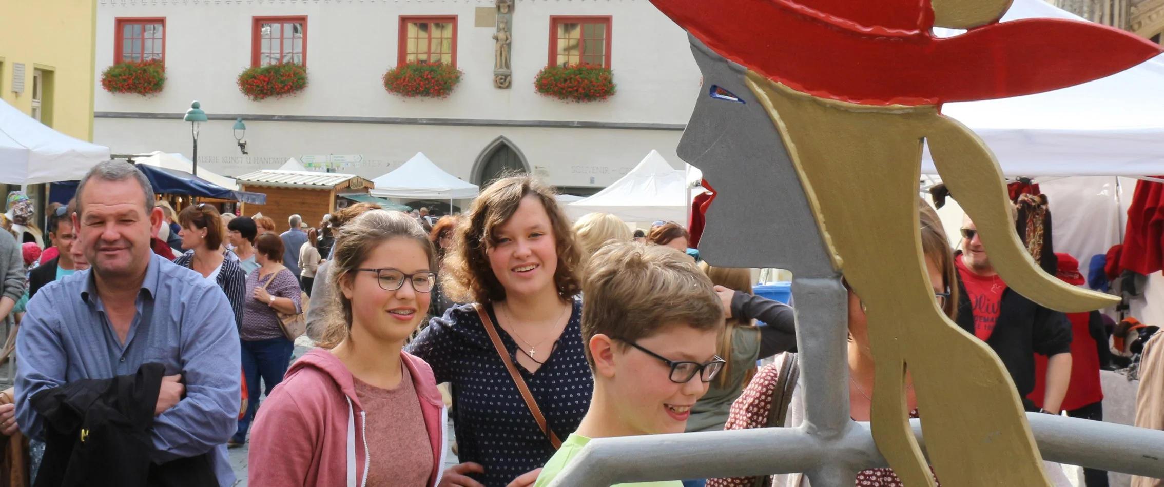 Mit mehr als 60 Teilnehmern findet in Nördlingen rund um das Rathaus und vor der Bücherei der Kunst-Handwerker-Markt statt. Dieser wird  von der Bildhauerei Wendt aus Löpsingen organisiert.