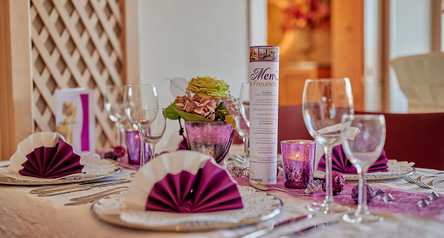 Genießen Sie einen entspannten Abend mit Ihren lieben Freunden. Wir verwöhnen Sie mit einem 4-Gang-Menü mit Aperitif am festlich gedeckten Tisch.