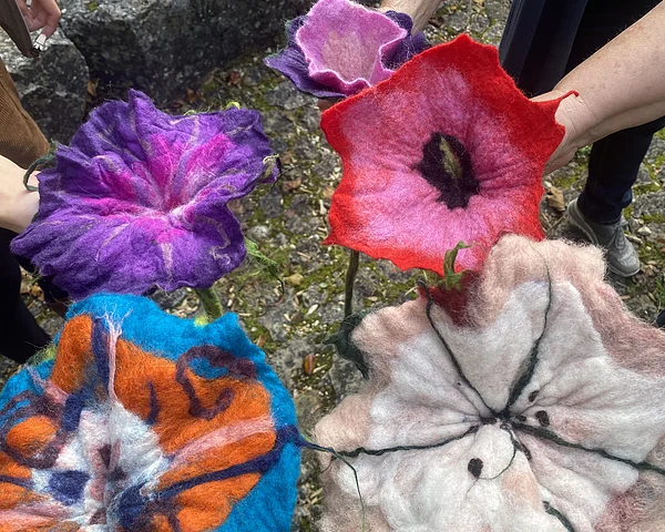 Von den Teilnehmern muss nichts mitgebracht werden. Alle Geräte werden leihweise zur Verfügung gestellt, und das verbrauchte, ungefärbte Wollgarn ist in der Kursgebühr enthalten. Es können jedoch gerne auch eigene Garne verwendet werden (bitte 100% Wolle und möglichst nicht superwash-ausgerüstet).