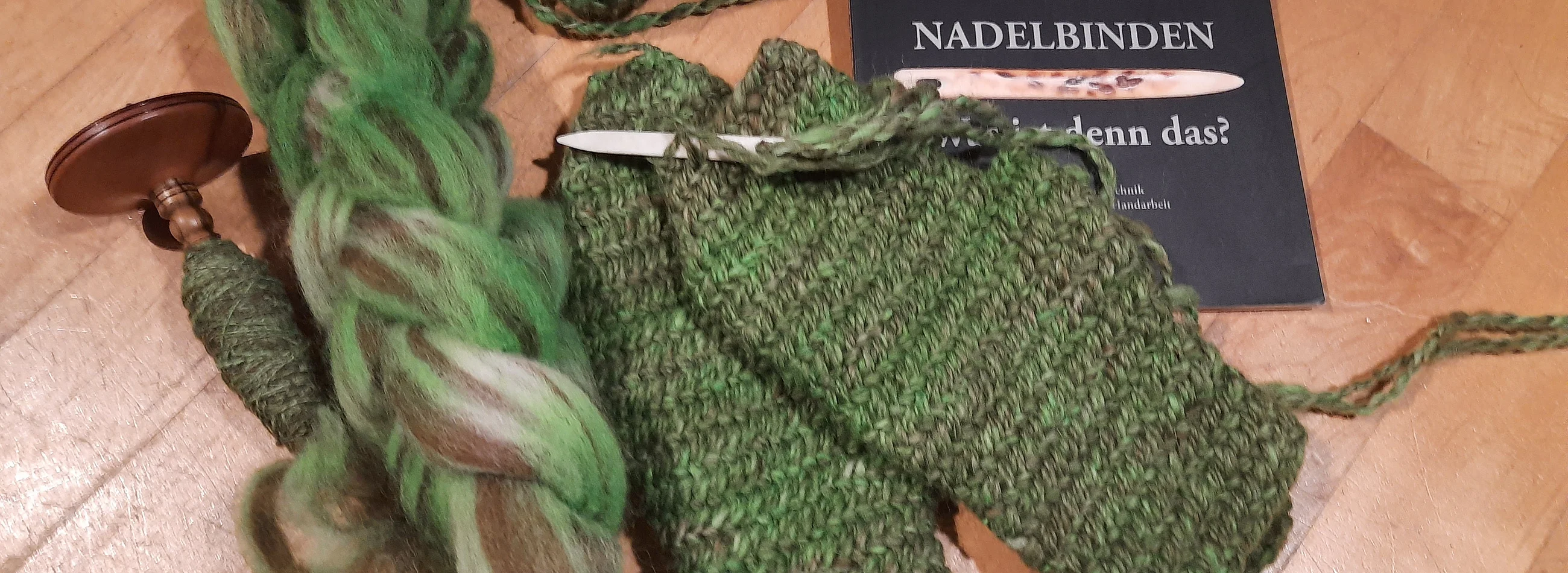 Die Voraussetzung für die Teilnahme an diesem Kurs sind Grundkenntnisse des Oslostichs (die auch am Vormittag im Einsteigerkurs erworben werden können) und die Verwendung der Daumenfangmethode (nicht Freihand-Nadelbinden). Außerdem wäre es hilfreich zumindest einen Verbindungsstich zu beherrschen, also mehrere zusammenhängende Reihen herstellen zu können. Dieser Kurs ist eher technisch ausgerichtet, es wird also in den drei Stunden kein größeres Projekt hergestellt, sondern es werden unterschiedliche Stichvarianten gezeigt, Zunehmen und Abnehmen, verschiedene Verbindungsstiche, Techniken zum Herstellen unterschiedlicher Formen (Finger an Handschuhen, etc.), Möglichkeiten den Anfang und das Ende eines Projekts zu nadeln und außerdem wird die berüchtigte Hansen-Notation erläutert und mit dem praktischen Arbeiten verbunden. Dabei entstehen viele kleine Probestückchen, die dokumentiert werden und später helfen können, Nadelgebundenes so umzusetzen, wie wir es geplant haben.